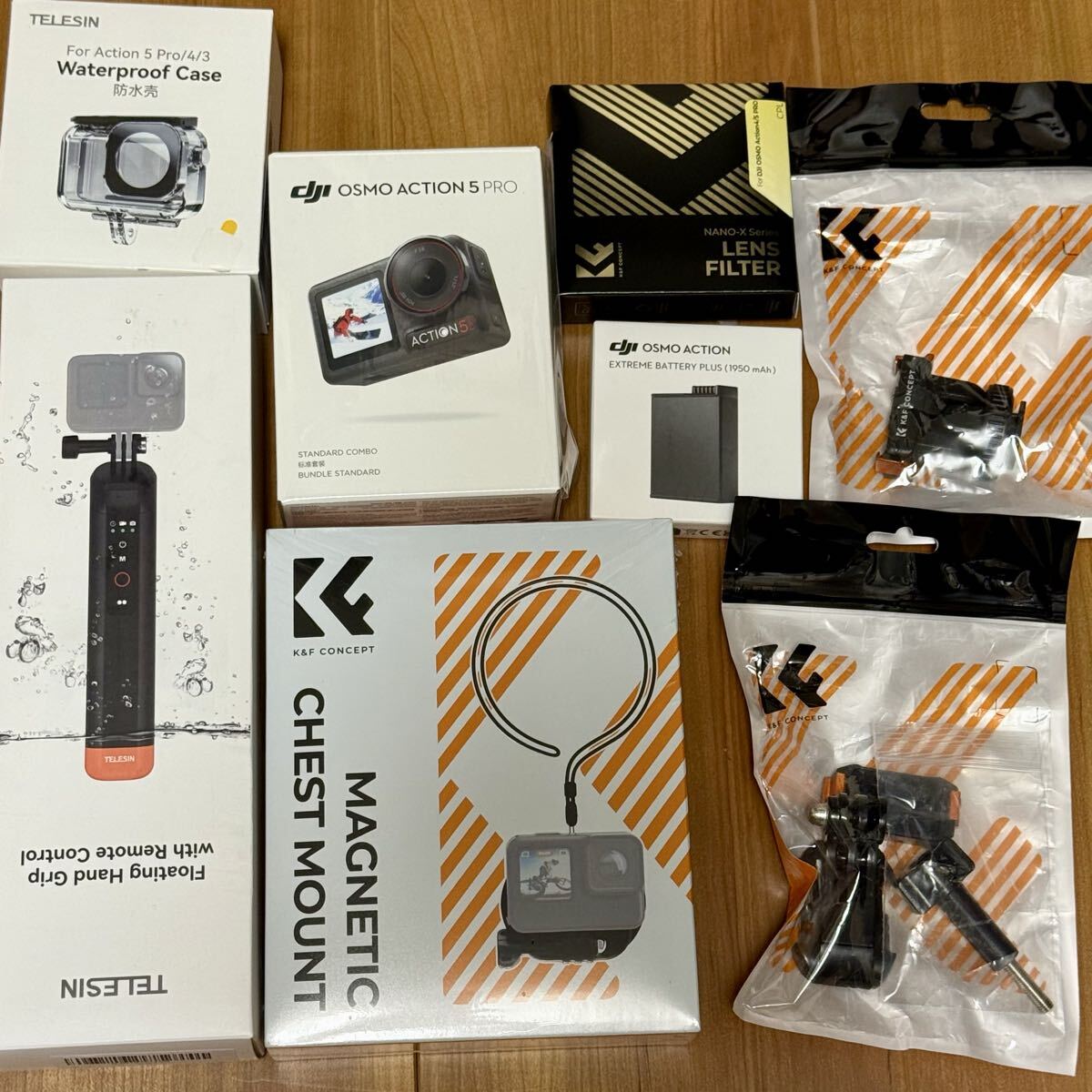 DJI Osmo Action 5 Proスタンダードコンボになります。また、多数のアクセサリーも一緒に出品します。