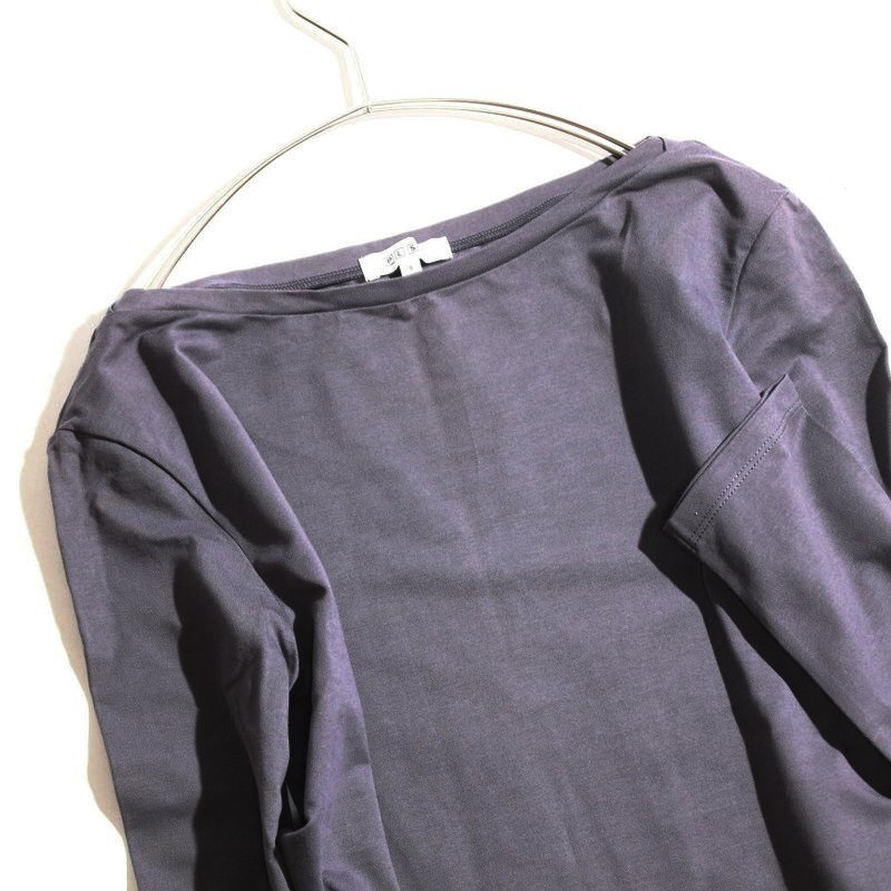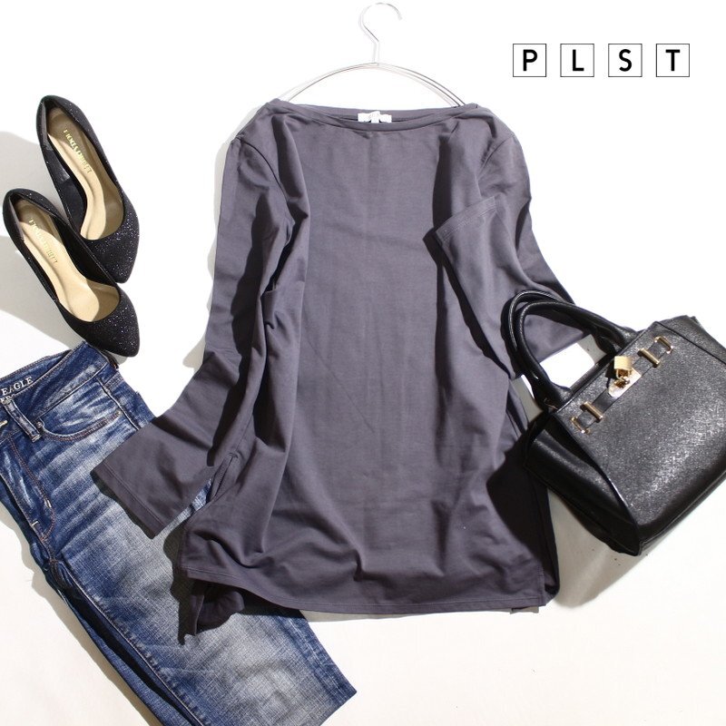 美品 プラステ PLST シンプル 定番 シンプル 透け感なし 長袖 ロングTシャツ カットソー S チャコール グレー 無地 ミセス Tシャツ