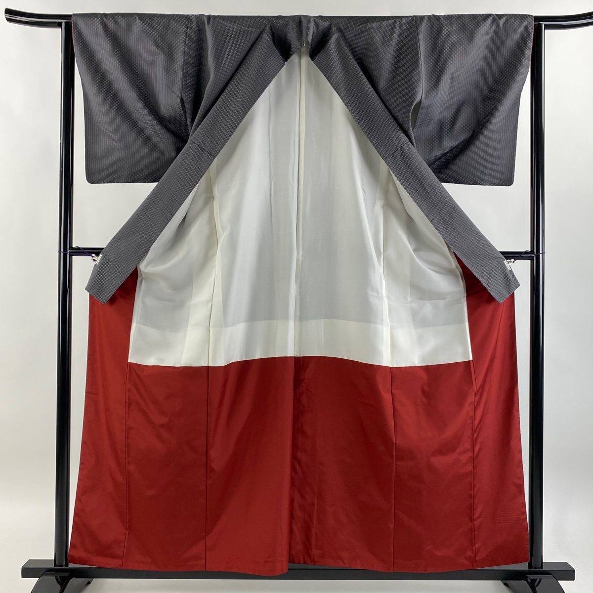 | 紬 逸品 証紙 綾織黄八丈 幾何学模様 縦縞 黒灰 袷 身丈158.5 裄丈64.5 M 正絹 【中古】 |