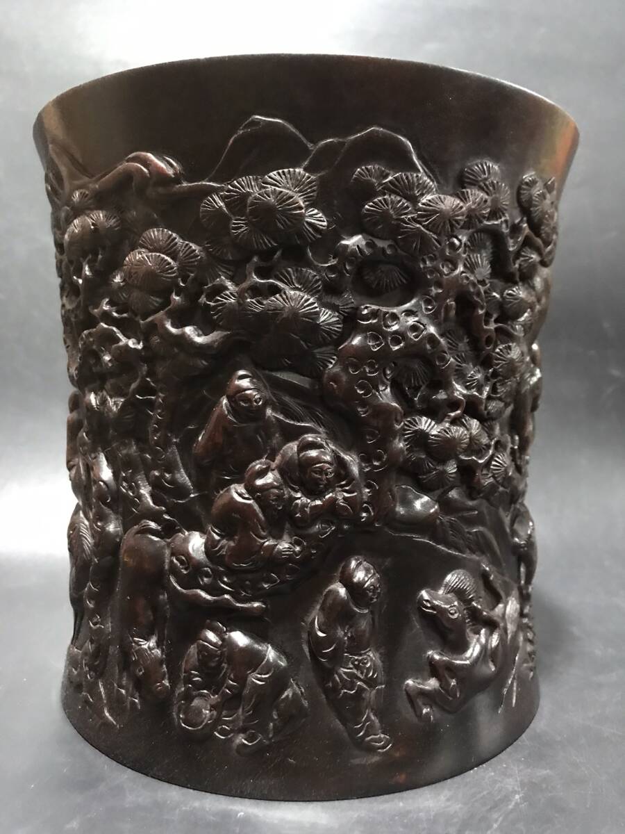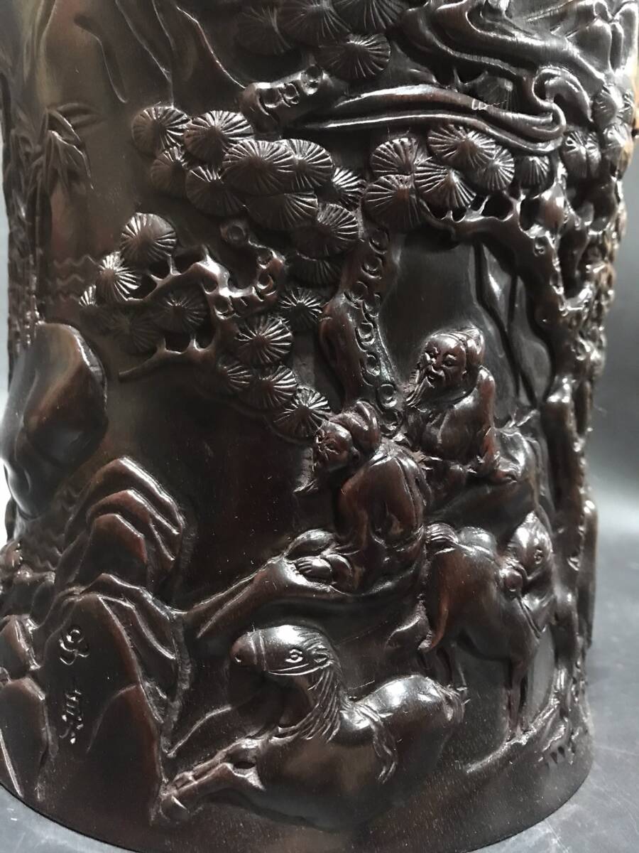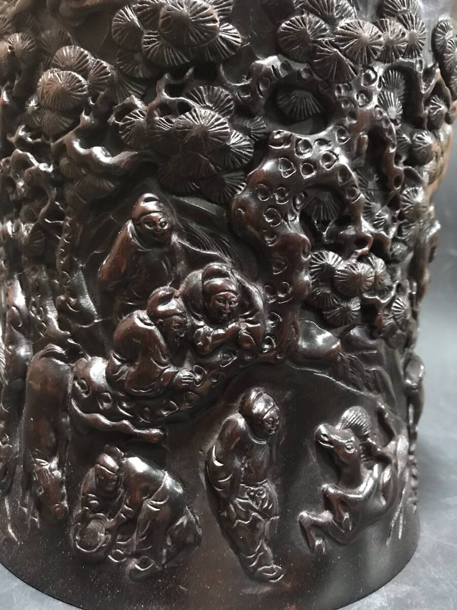 中国骨董人間国宝 古代木工芸品 彫刻品 【旧蔵檀木彫「人物物語」ペン立てです】 時代物 本物 珍品旧蔵 伝世家珍 | |||