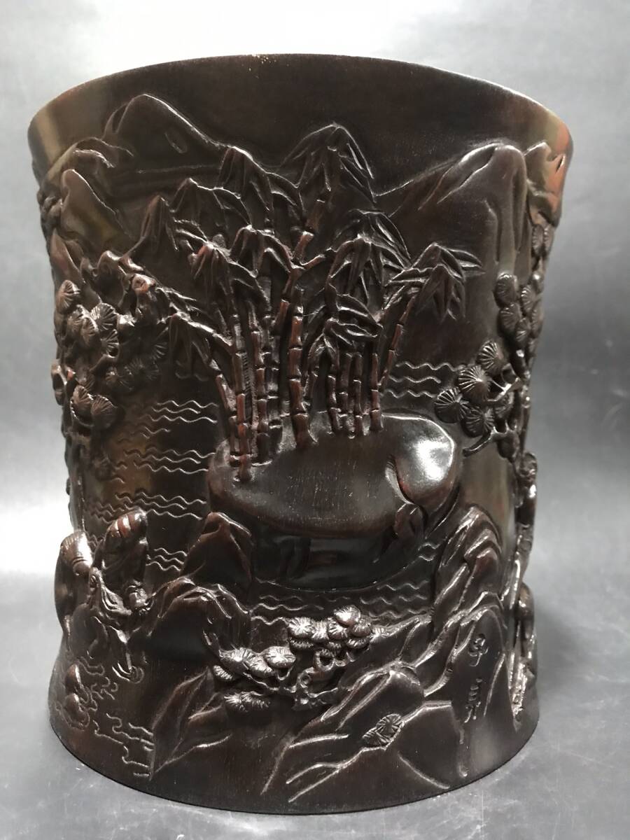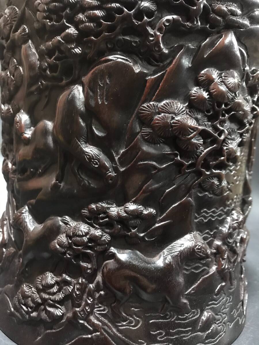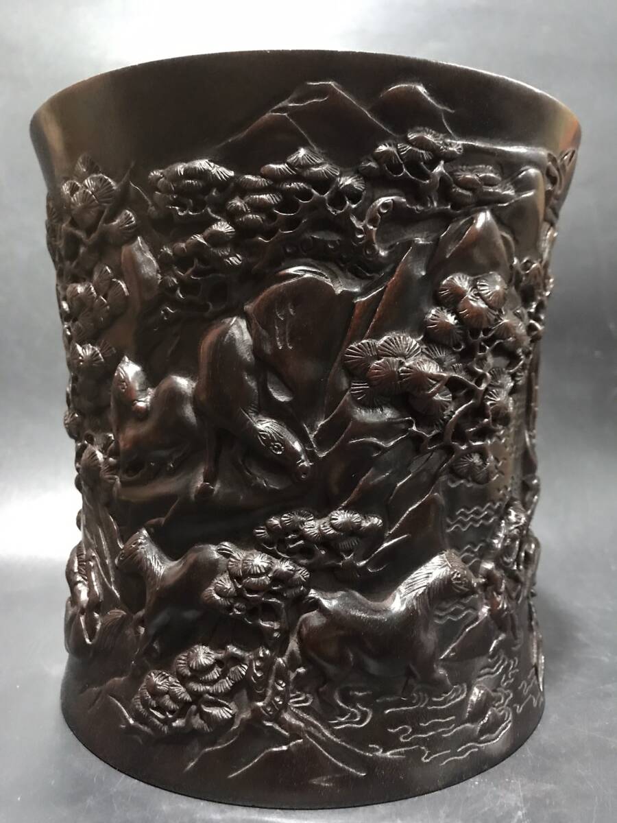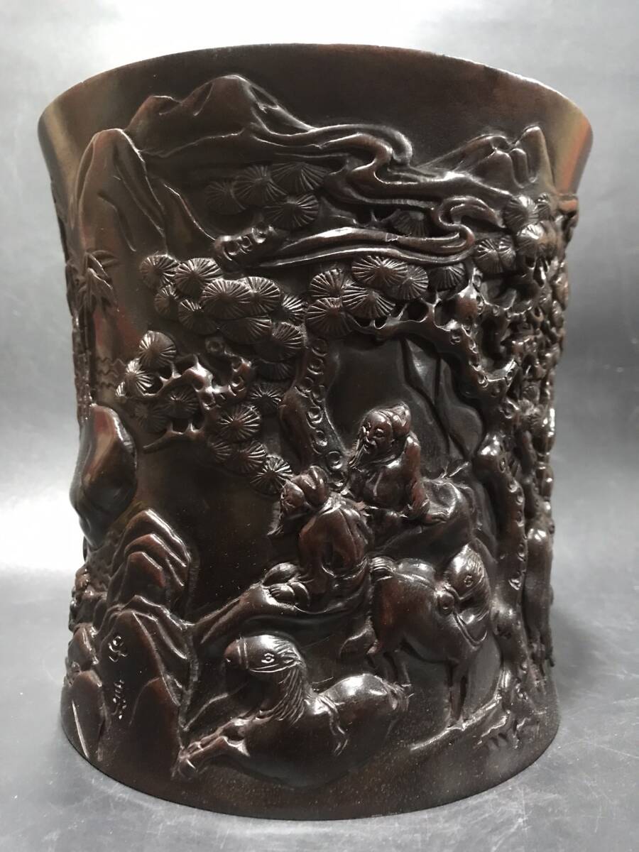 中国骨董人間国宝 古代木工芸品 彫刻品 【旧蔵檀木彫「人物物語」ペン立てです】 時代物 本物 珍品旧蔵 伝世家珍 | |||