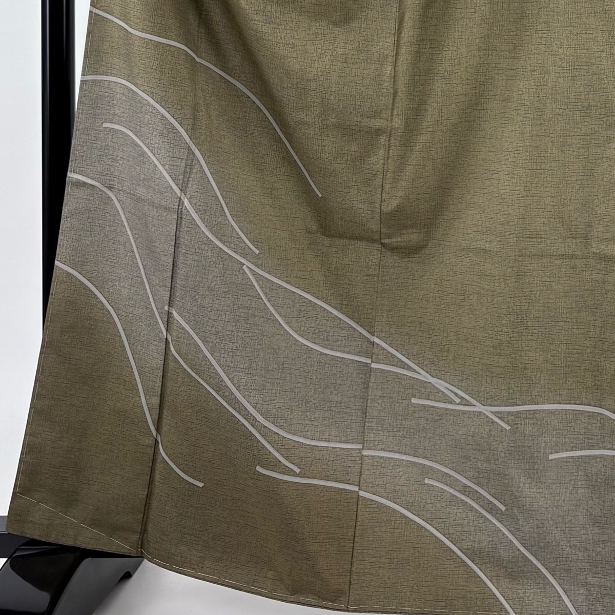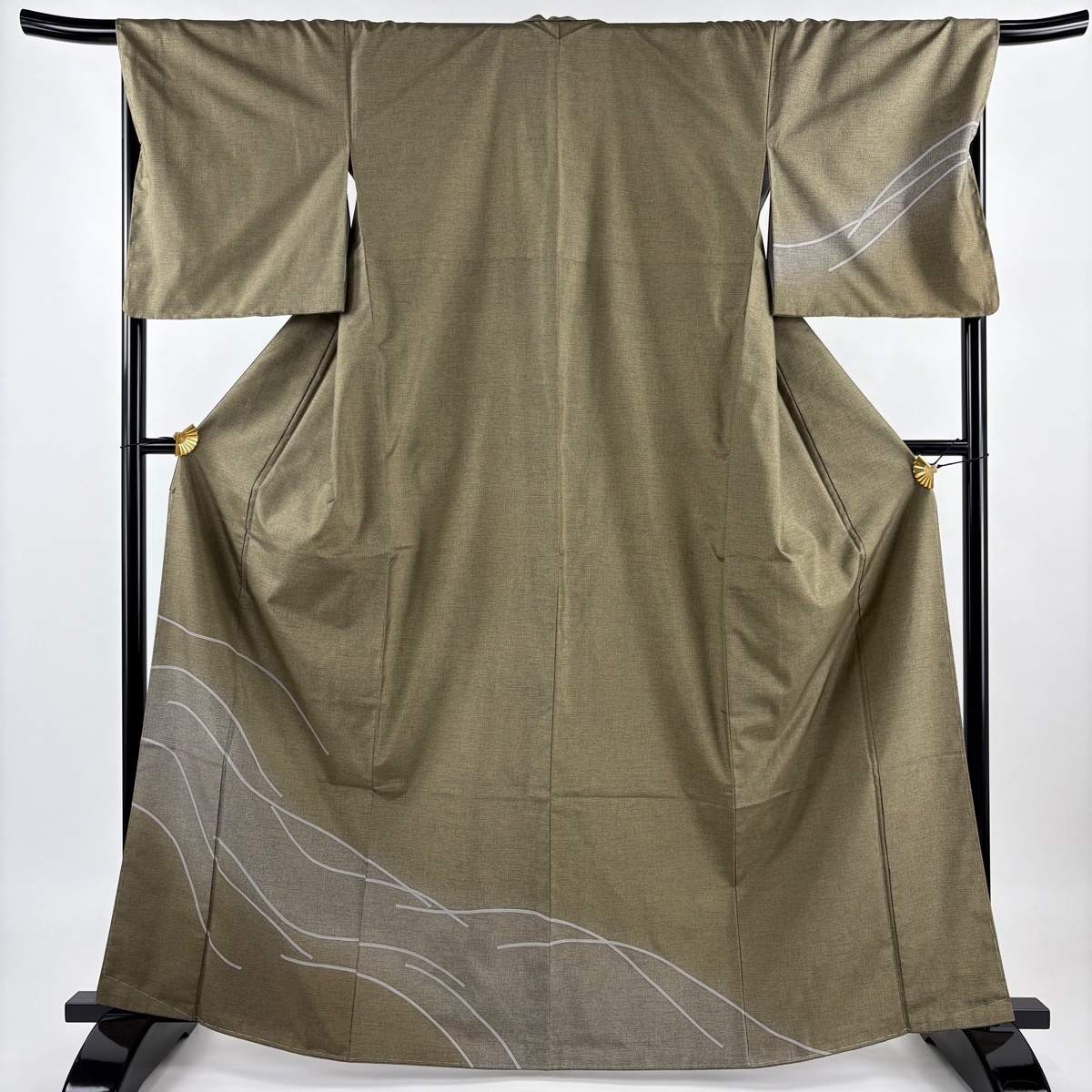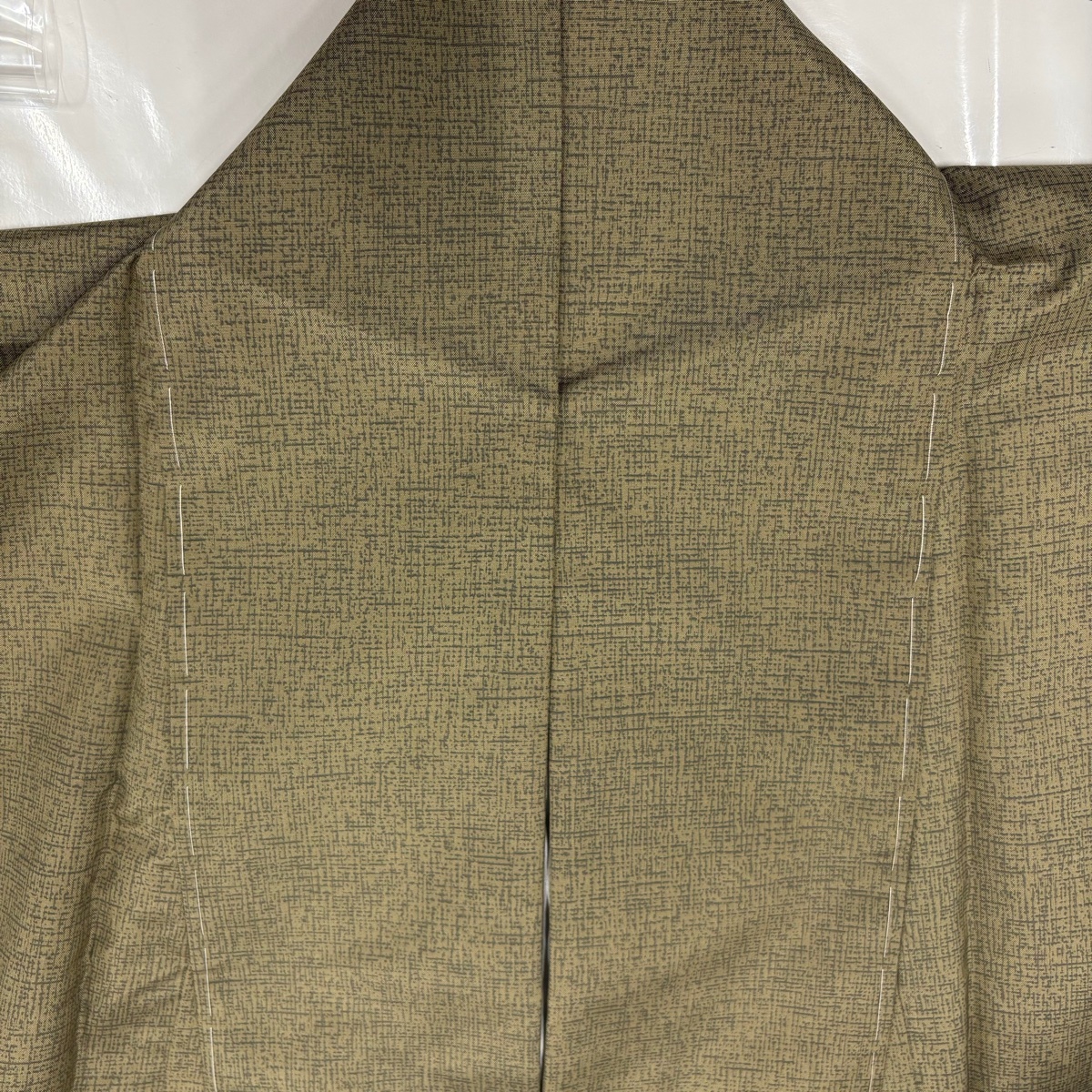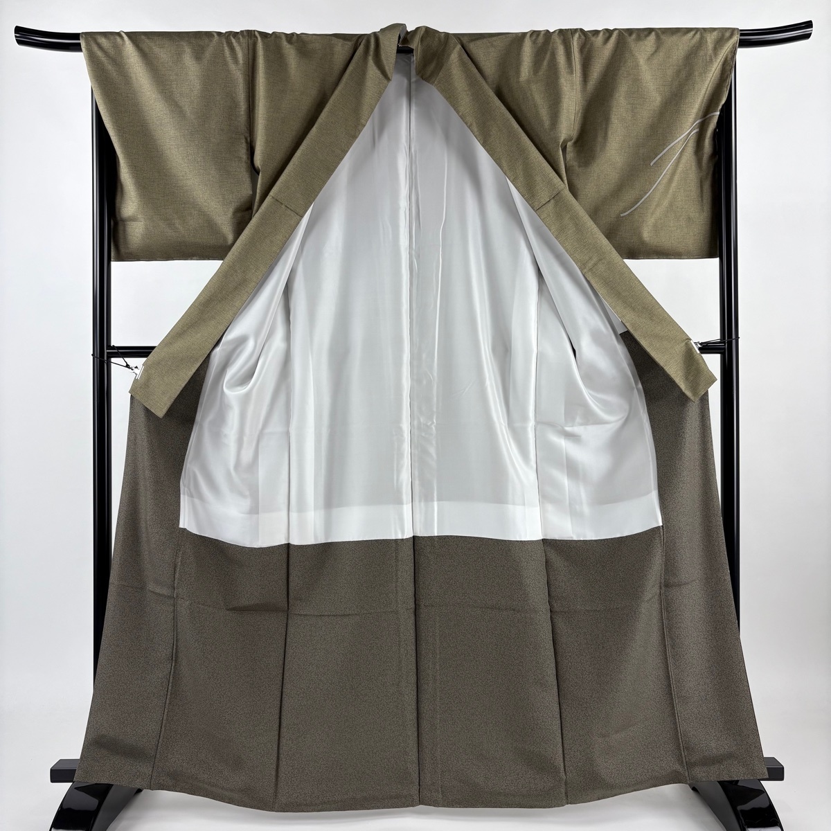 | 付下げ 美品 秀品 紬地 幾何学 茶緑色 袷 身丈164 裄丈69 L 正絹 【中古】 |
