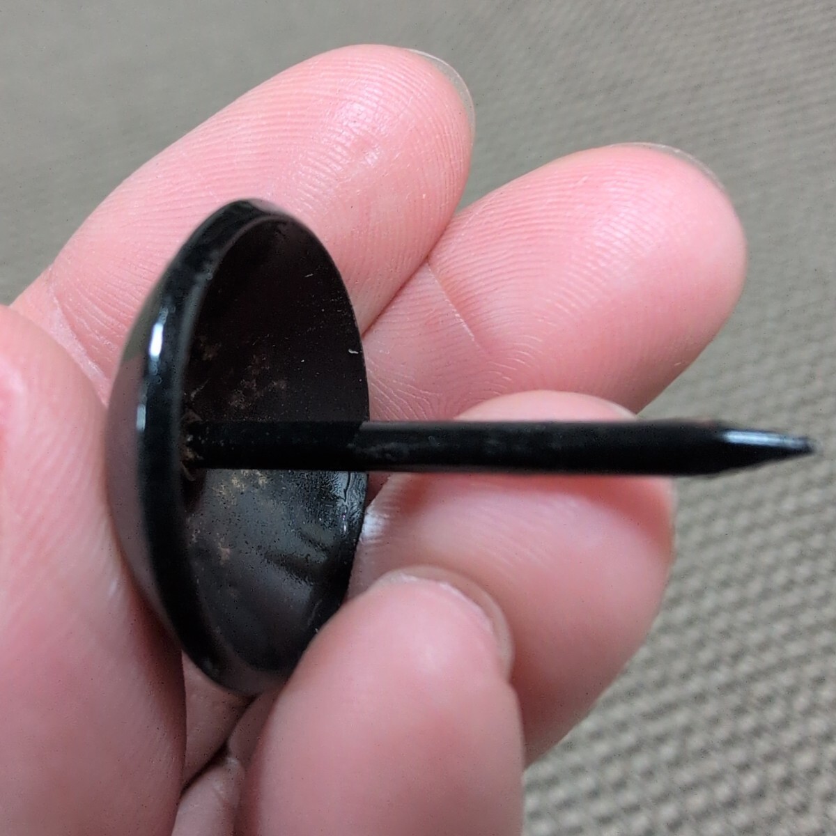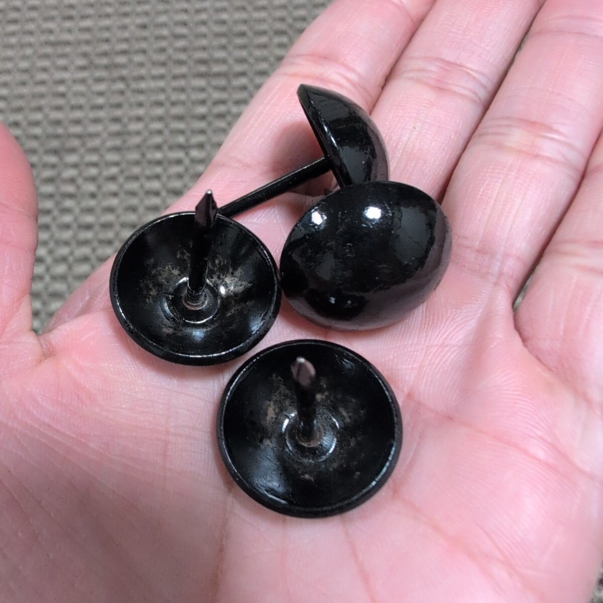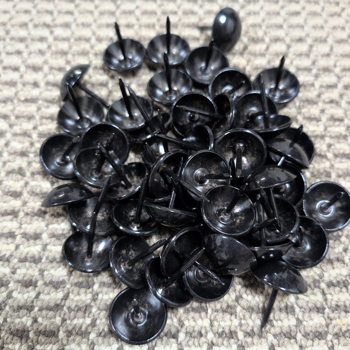 ジャンク品/長期保管品/メーカー不明/太鼓鋲/飾鋲/鉄黒塗/呼称24×30/頭径23.5mm/全長30mm/1P50本入り