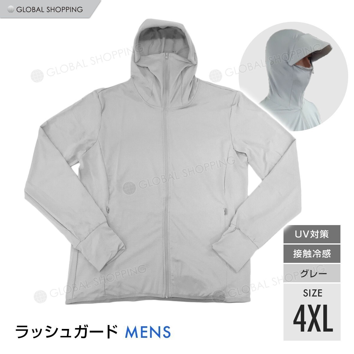 ラッシュガード 水着 パーカー メンズ ラッシュパーカー UPF50+ UVカット 指穴つき 紫外線対策 日焼け防止 ポケット 灰色 4XL