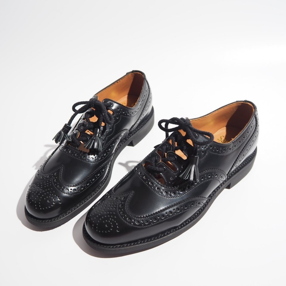 R1701P ▼SANDERS サンダース▼ 1745B GHILLIE SHOE BLACK POLISHING LEATHER ギリーシューズ ブラック 7/26cm ポリッシュドレザー rb mks