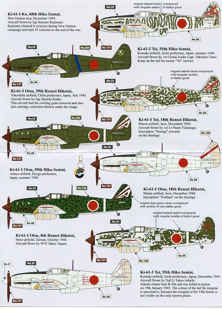 陸軍三式戦闘機川崎Ki-61飛燕Ⅰ型甲/乙/丁のマーキング集です。1/48スケール用。新品です。48-027 | ||