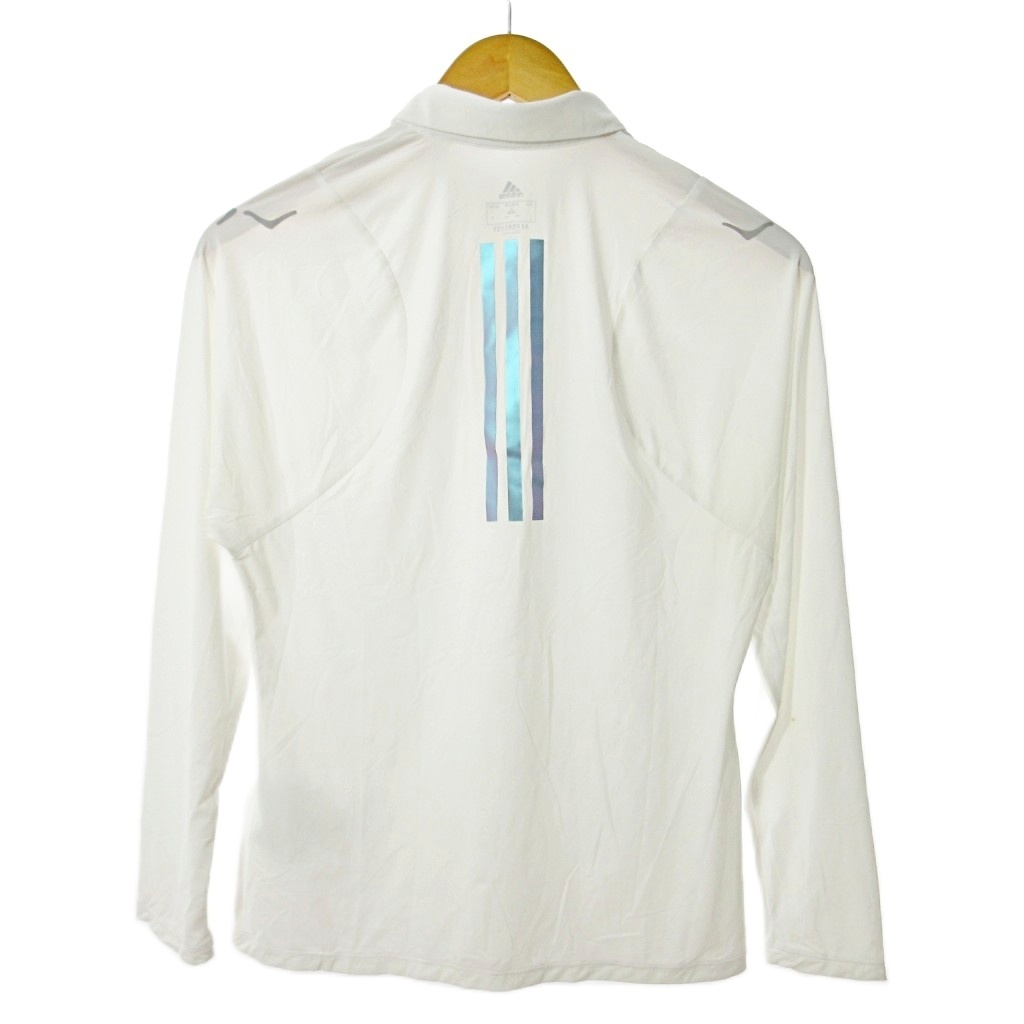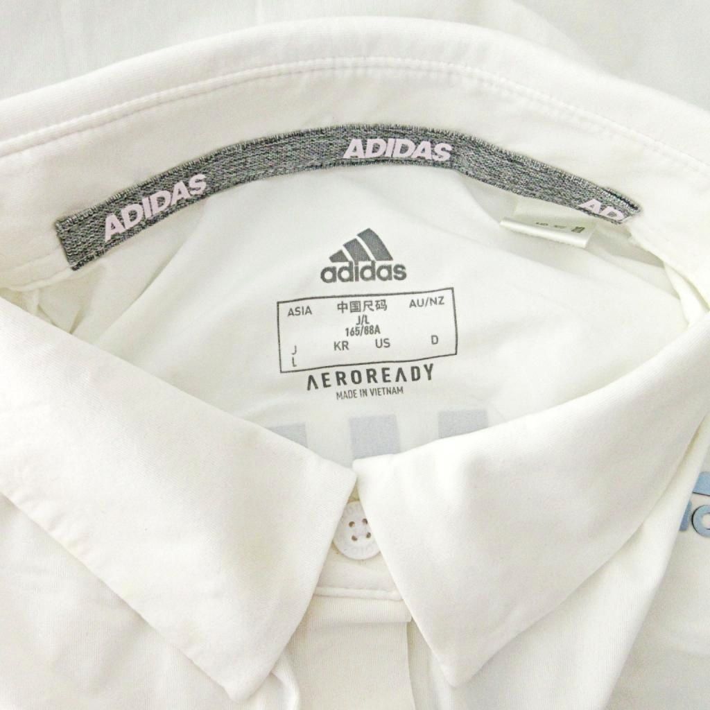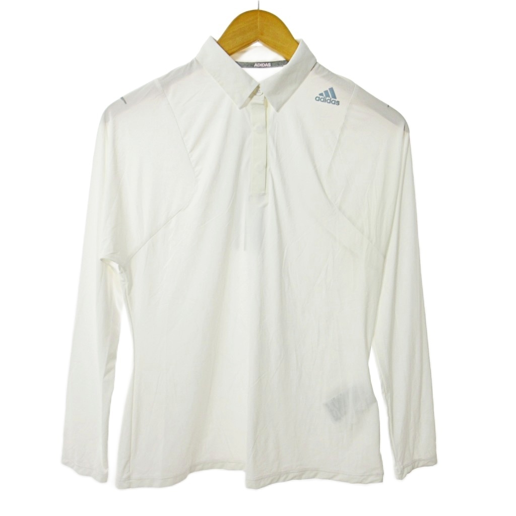 アディダス adidas LW LS POLO ナイロン ポロシャツ カットソー 長袖 ストレッチ ロゴ L 白 0821 レディース