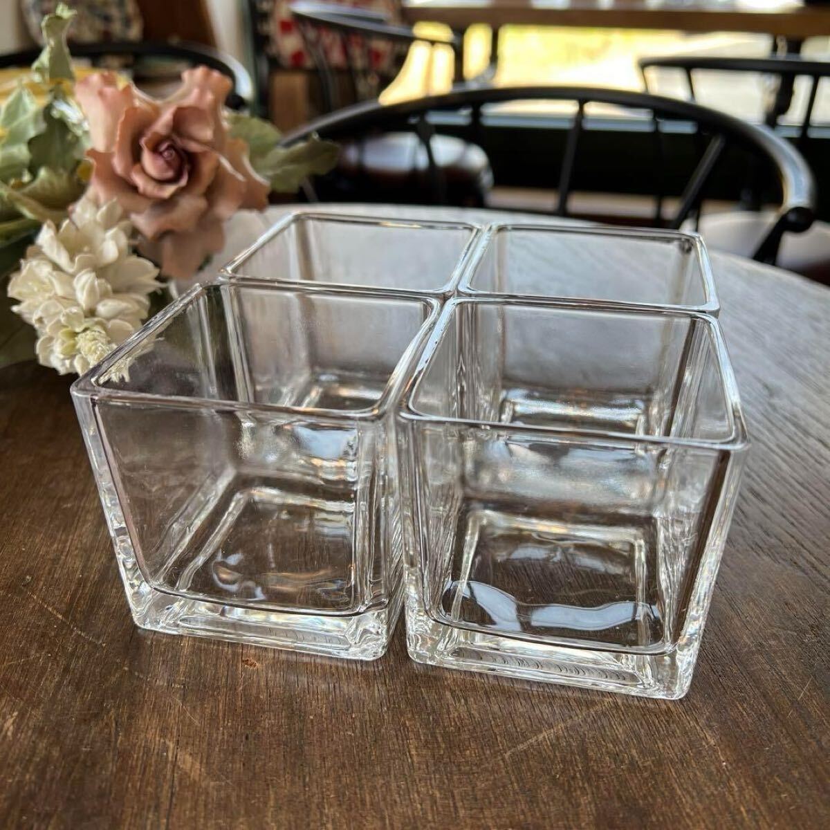 【 キューブ型グラス 】 小さなお花を飾ったり、多肉植物やサボテン ハイドロカルチャーを育てるのにもオススメのアイテム ■サイズ(約) 幅 7.5㎝ 奥行 7.5㎝ 高さ 7.5㎝ ■状 態 経年による若干の小キズや汚れがあります。 大きな破損はなくコンディション良好です。 詳細は写真でご確認ください。 ※神経質な方・完璧をお求めの方はご購入をお控えください。 詳細は写真を参考の上、ご入札をお願い致します。 商品写真に関しまして、PC環境や撮影状況等により 色合いが実物と若干異なる場合がございます。 また、サイズに関しましても若干の誤差が生じる場合がございます。 ご理解、ご了承の上、ご入札をお願い致します。 下記の注意事項をよくご確認の上、ご入札をお願い致します。 金額の入力ミスによる入札金額の変更や入札取消はできませんのでご了承下さいませ。 |