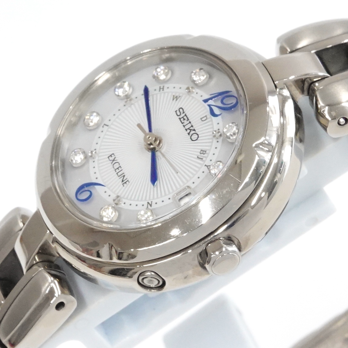 SEIKO セイコー エクセリーヌ SWCW121 レディース ソーラー電波 チタン ダイヤ9ポイント 1B22-0CH0