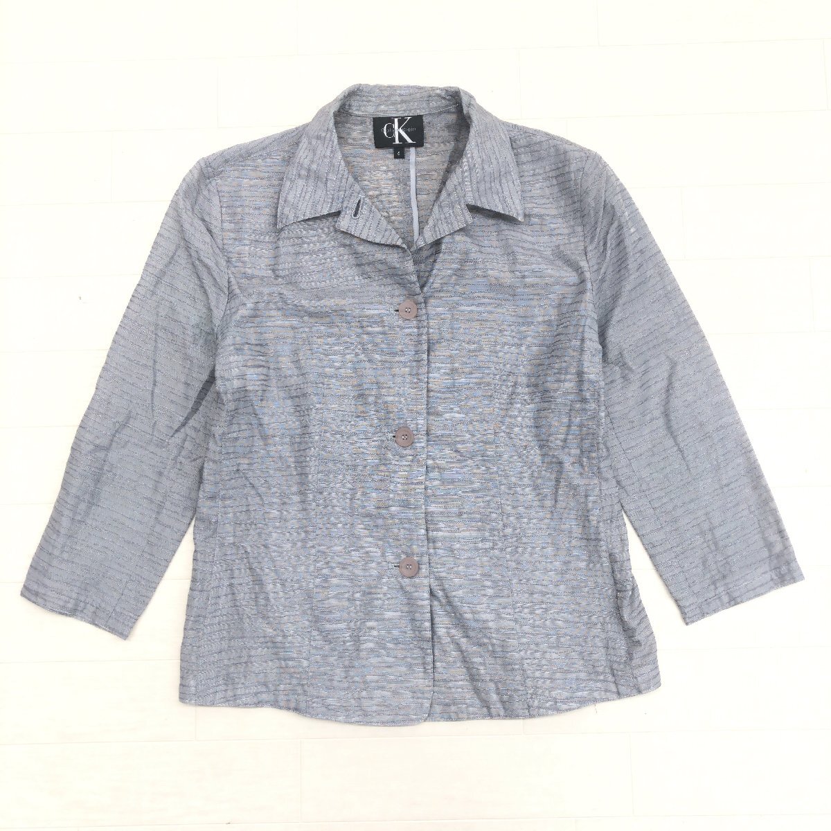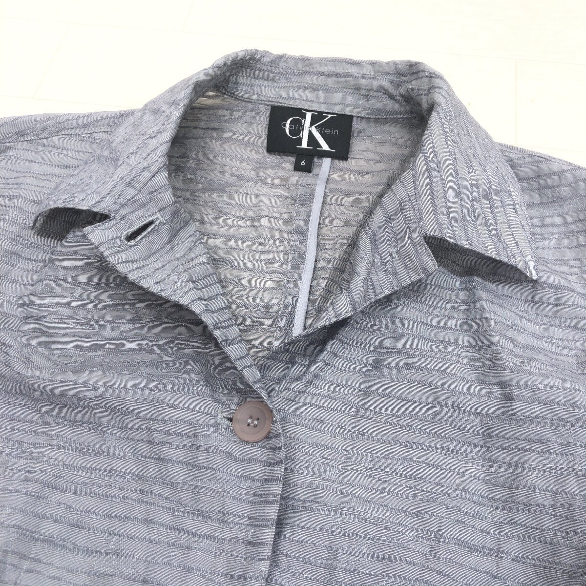 CK Calvin Klein カルバンクライン コットン シャツ ジャケット 6 グレー 総柄 羽織り 七分袖 薄手 国内正規品 レディース 婦人