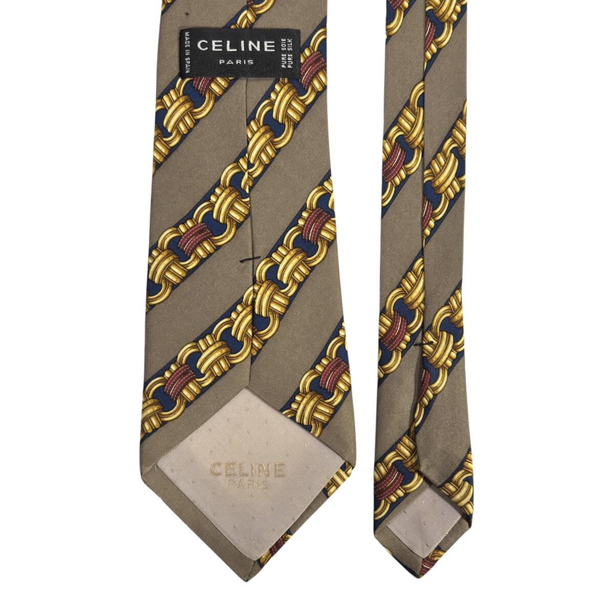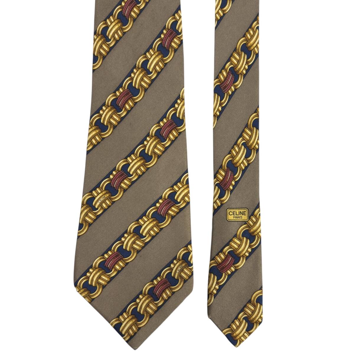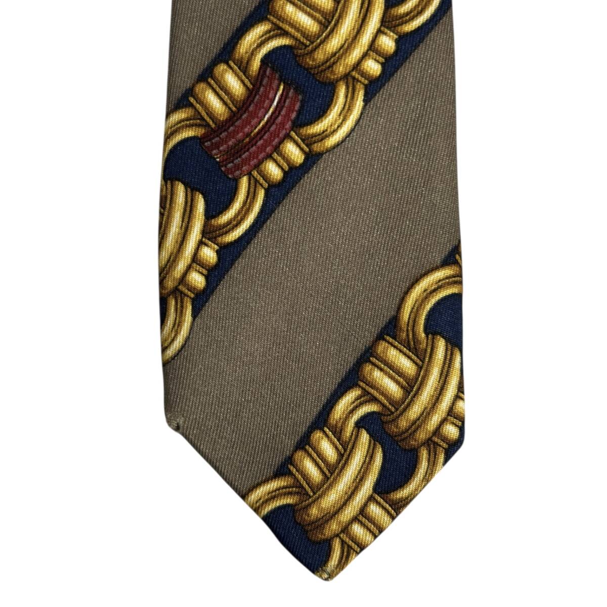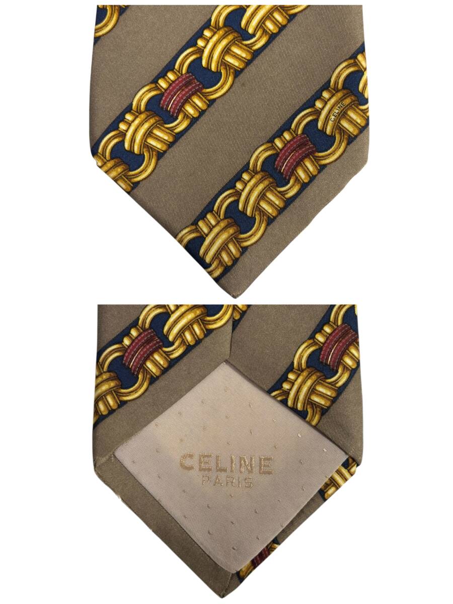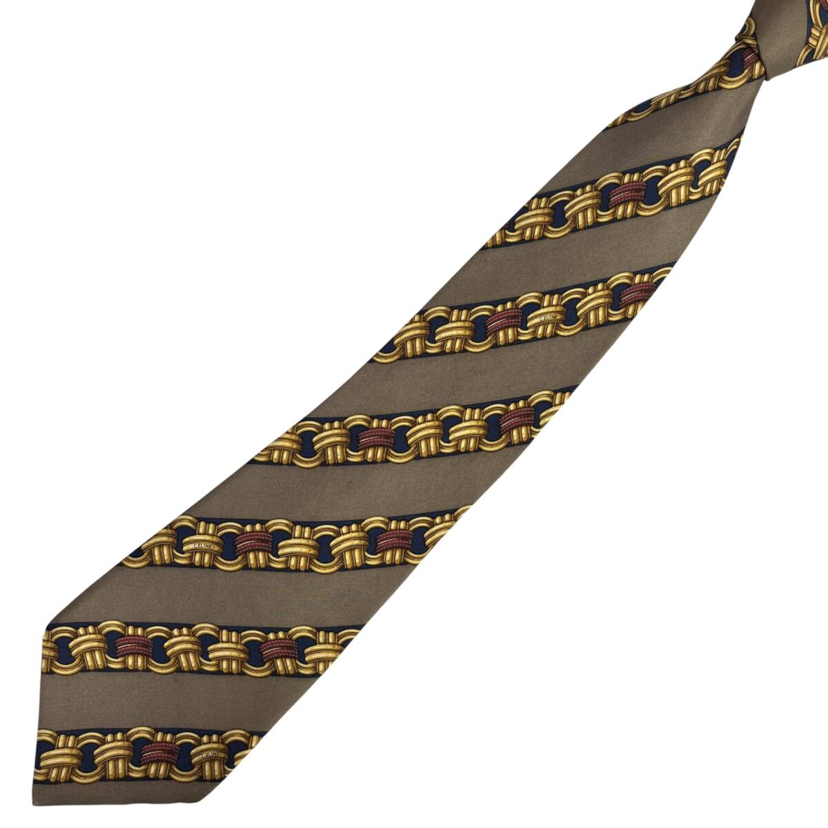 ◆チェーン柄◆CELINE◆高級SILK ネクタイ SPAIN製 パターン柄 セリーヌ USED N085
