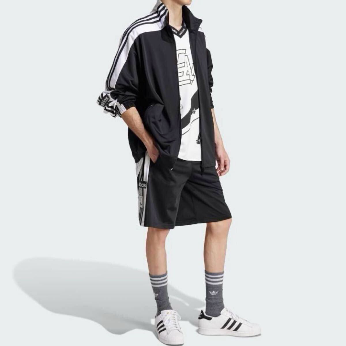 大胆なスリーストライプスとアイコニックなトレフォイルロゴがポイント。