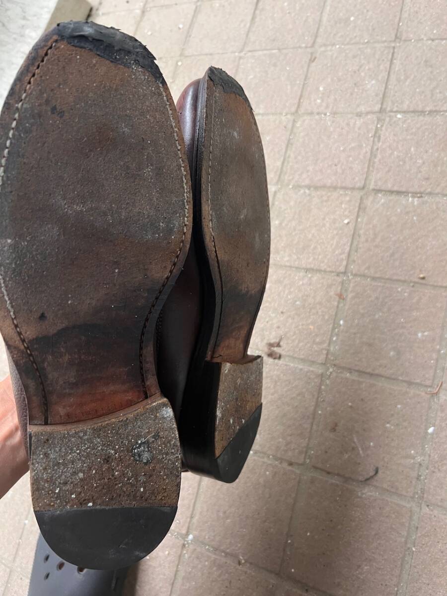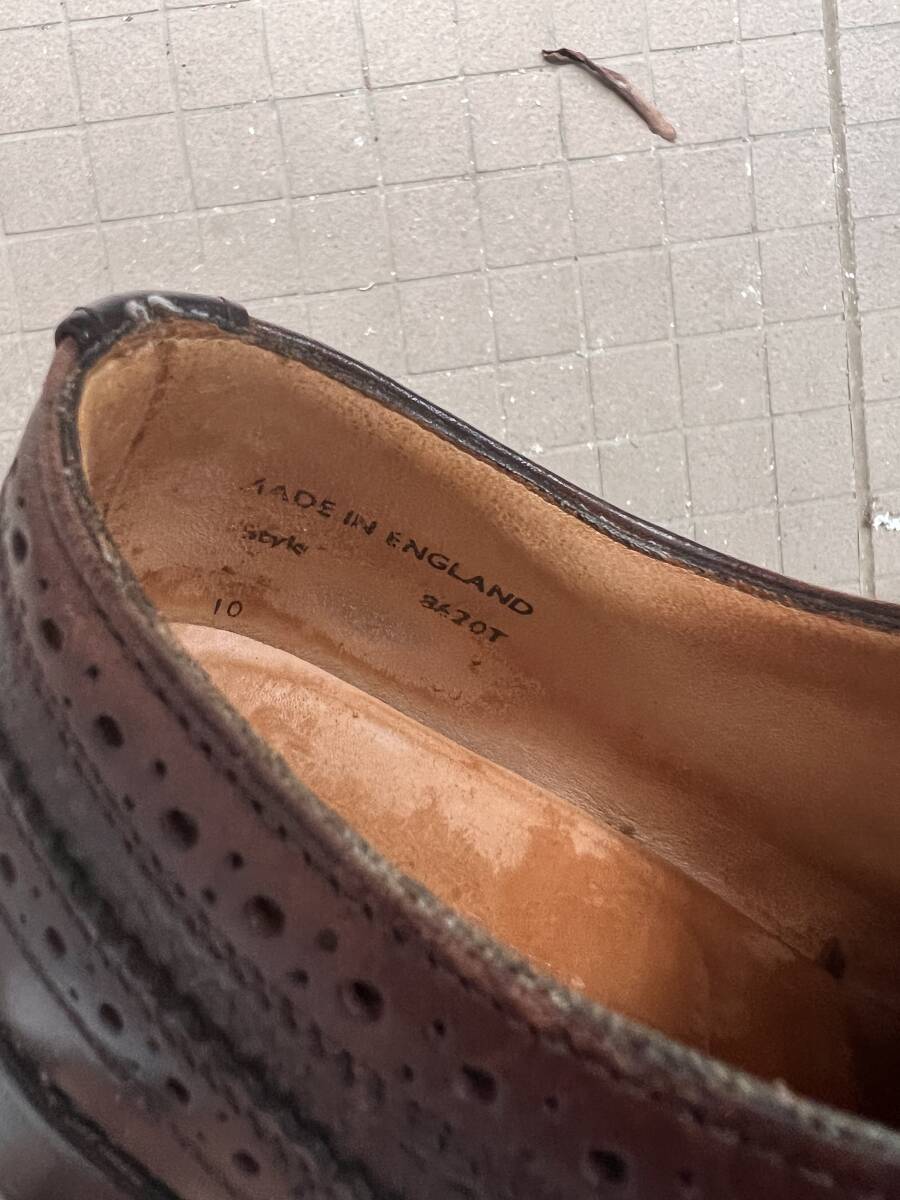 スムースレザーとシボ革のアシンメトリーが特徴のレザーシューズ(革靴)で、MADE IN ENGLANDのものになります。