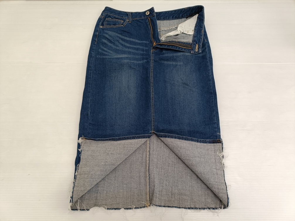 デニム ロングスカート ダメージデニム スリット ジッパーフライ レディース インディゴブルー サイズLL