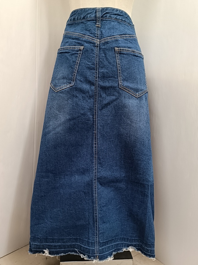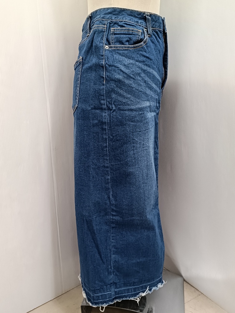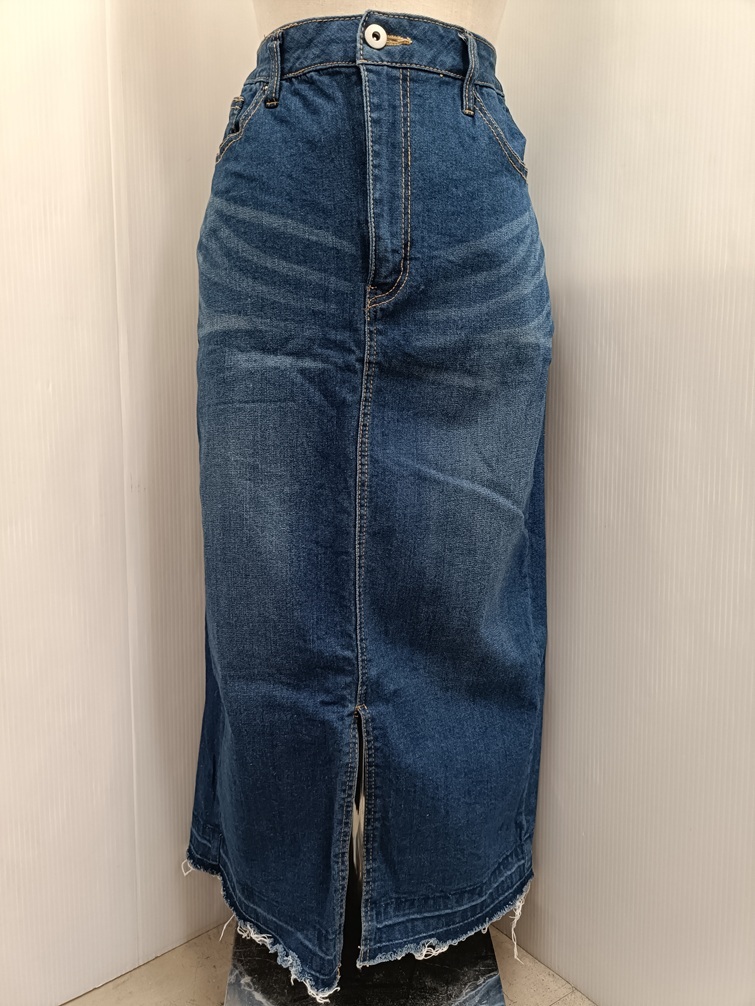 デニム ロングスカート ダメージデニム スリット ジッパーフライ レディース インディゴブルー サイズLLです。