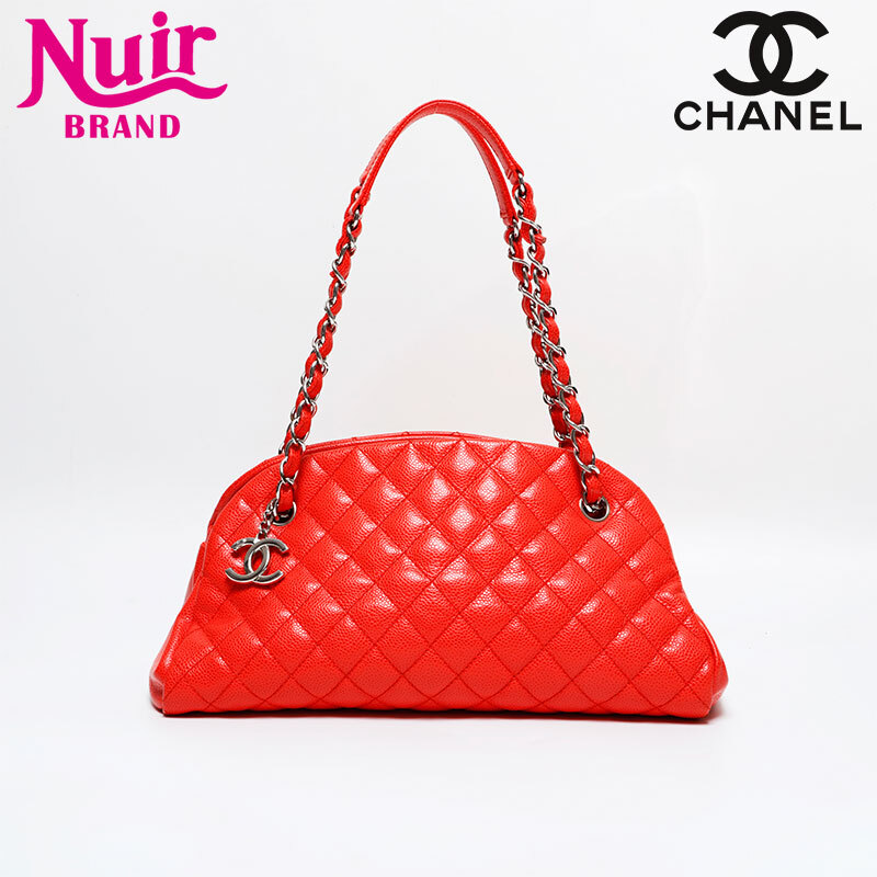 極美品 シャネル CHANEL 17番台 2012-2013 マトラッセ ジャストマドモアゼル キャビアスキン ショルダーバッグ オレンジ WS21801