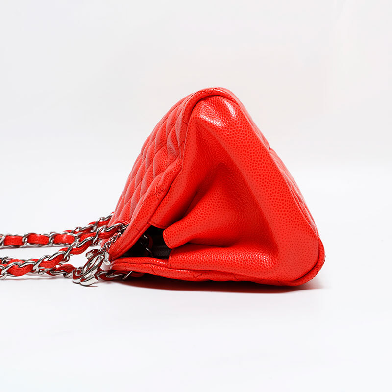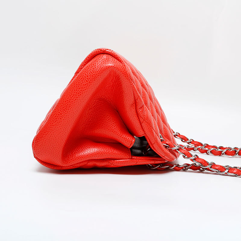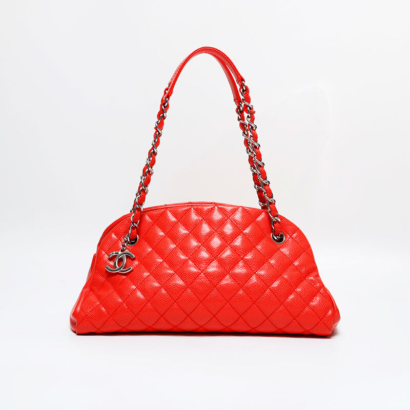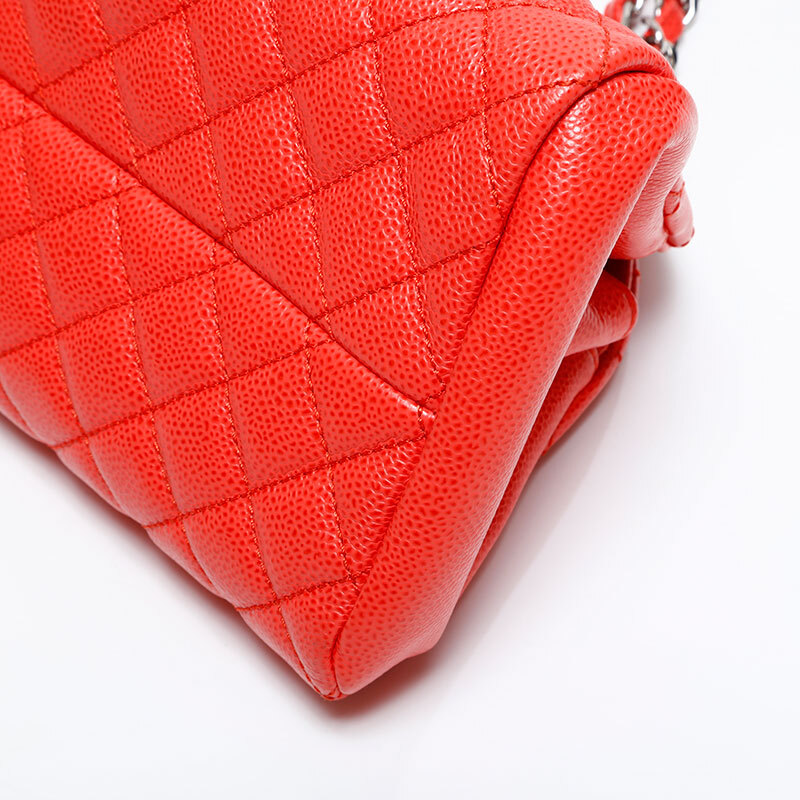 極美品 CHANEL 17番台 2012-2013 マトラッセ ジャストマドモアゼル キャビアスキン ショルダーバッグ オレンジ