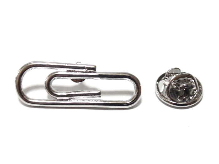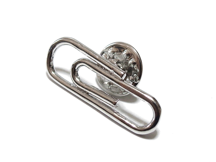 ラペルピン★ピンズ ペーパークリップ ゼムクリップ 文房具 ユニーク シルバー pin-1106