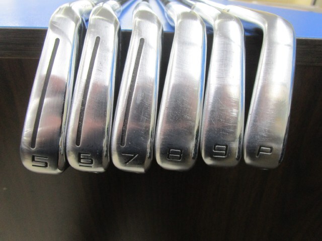 ◎USEDアイアン5-9・Pの6本セットです。フェース溝によく見ないと分からない程度ですが小さな点サビがあります。リシャフト品です。シャフトスペックシールないので詳細は買取時のお客様申告です。グリップはツアーベルベッドのコード入りです。ソールに擦り傷フェースに打球痕、使用に伴う細かな傷がございます。重量・バランスは5Iでの計測です。
