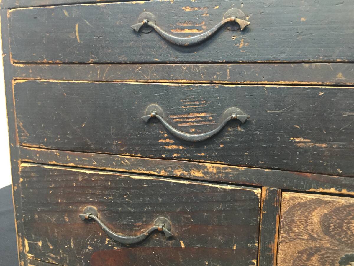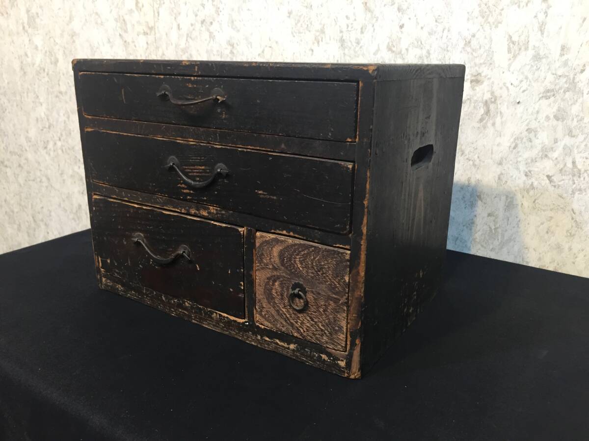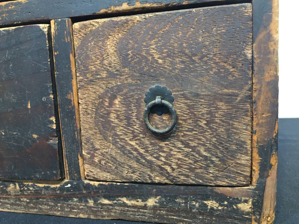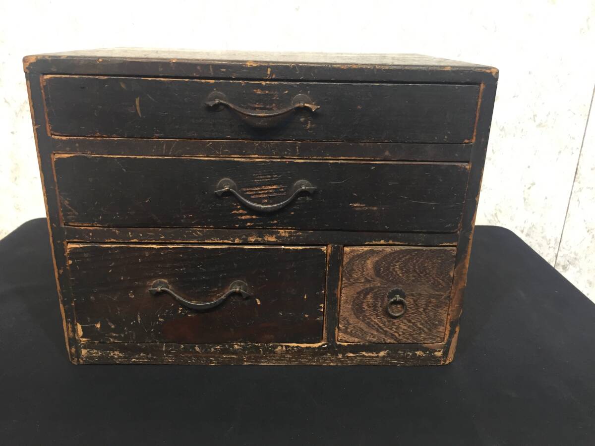 商品説明 | 商品説明 管理番号NAK-0708-1511 ≪サイズ≫ 本体寸法:幅33㎝×奥行22.8㎝×高さ25.3㎝ 重量:3.25㎏ 引出内寸法:上段29㎝×19.5㎝×高さ3.4㎝ 中段29㎝×19.5㎝×高さ4.8㎝ 左下段18.8㎝×19.7㎝×高さ8.1㎝ 右下段7.7㎝×19.5㎝×高さ8.1㎝ ※寸法は多少の誤差が有ります。 ☆時代を思わせるレトロ感あふれる小型箪笥ですので、 店舗や古民家のディスプレイや小物収納に如何でしょうか。 また、舞台セットの小道具としても時代を思わせる風合いある和箪笥です。 古いですので、傷や汚れは有りますので気になる方は入札をお控えください。 発送時はレトロ感保持の為、簡単刷毛履き清掃での発送となります。 ☆注意事項をよくお読みください。 送料 佐川急便 飛脚宅配便 サイズ100 信越発 ※宅配サイズ及び信越発を確認後、下記URLから送料をご確認ください。 https://www.sagawa-exp.co.jp/send/fare/list/sagawa_faretable/faretable-5.html#ft01 注意事項 ☆経年によりやや傷や汚れがあります。 ☆時代物中古品ですので、梱包を剥がす際は十分注意してください。 ★商品の発送は佐川急便㈱になります。 ゴールデンウイーク、お盆、年末年始の発送はできません。 ご迷惑をお掛け致しますが、ご容赦願います。 ☆この商品は中古品ですので写真のみにてご判断ください。 (PC等や環境設定により色調に微妙に違って見える場合が ありますのでご了承下さい。) ☆家電品や可動製品等の動作確認はしておりませんので、 気になる方は入札をご遠慮ください。 ☆発送時には丁寧に梱包にてお送りいたしますが、 発送後の破損等の保証は当方では行っておりませんので ご理解をお願いいたします。 |
