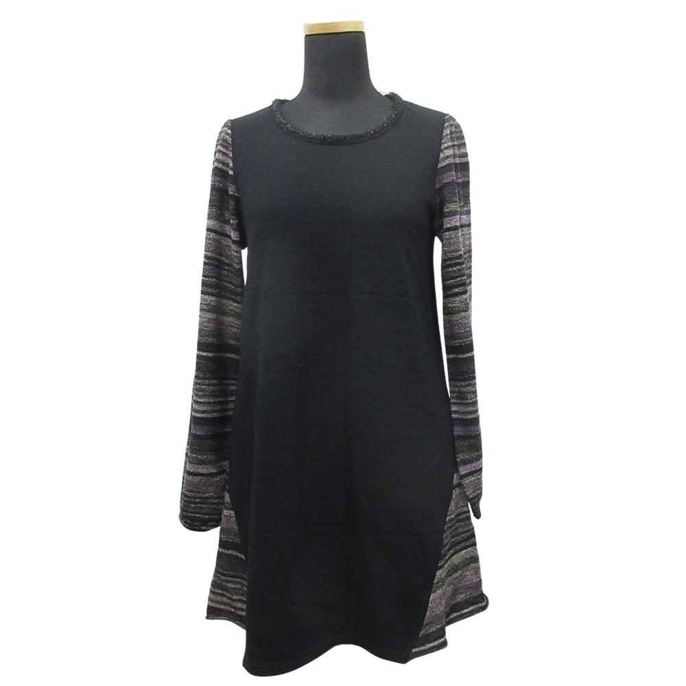 商品名:M.&KYOKO エムアンドキョウコ チュニック ワンピース カットソー 長袖 切替 サイズ1 黒 ブラック