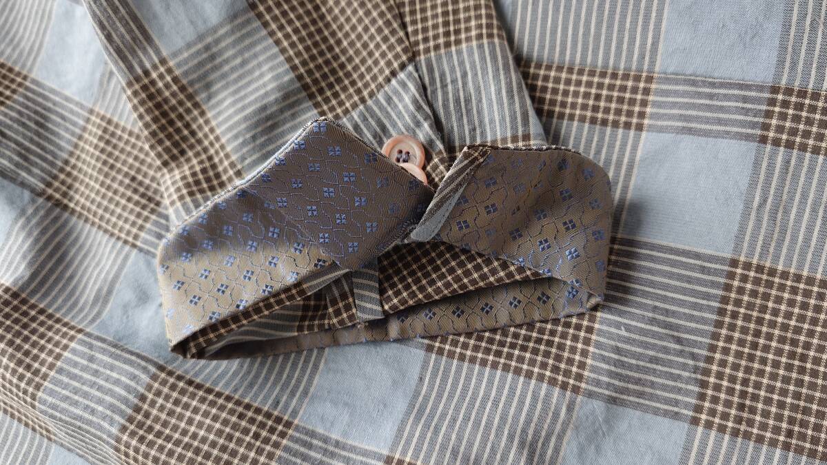 袖のカフス部分は折り返して着て頂くとプリント柄がでてきます。本切羽ですのでボタンを外してめくって着て頂くこともできます。