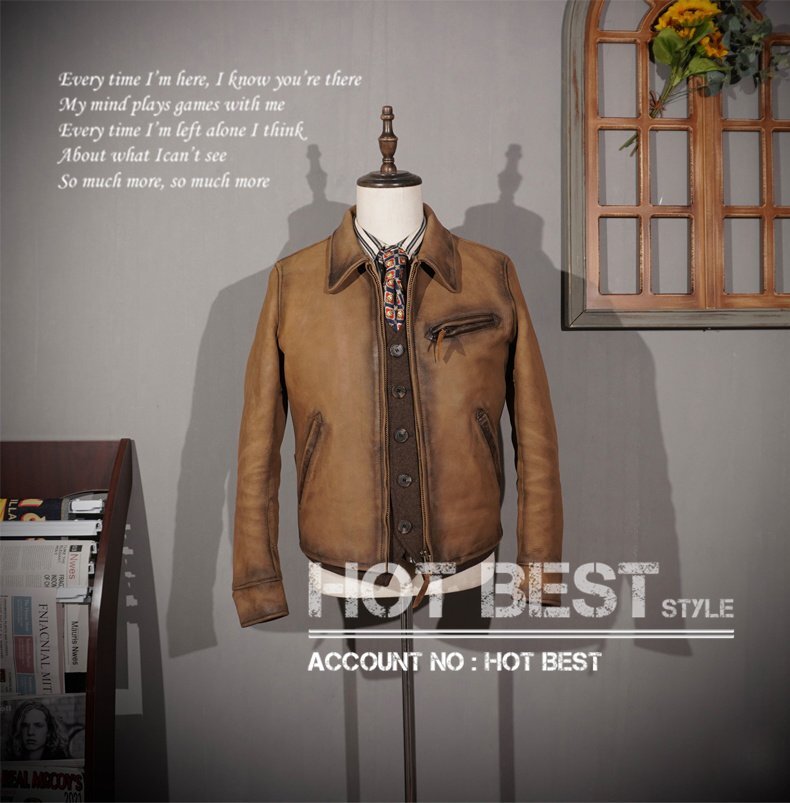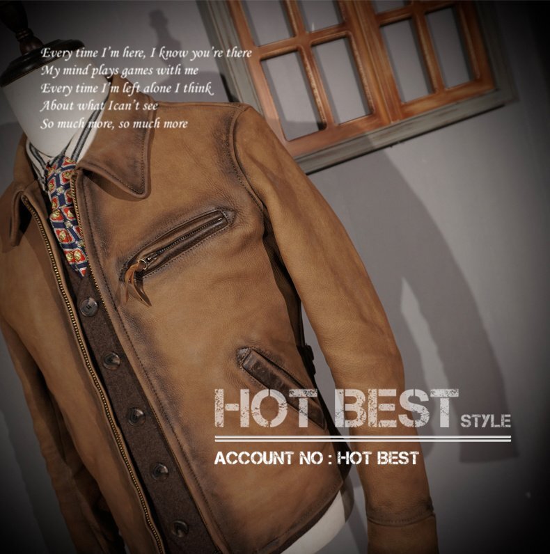 1.3mm カウハイド 30's トラッカースタイル メンズ 革ジャン ヴィンテージ加工 シングルライダース レザージャケット 牛革 Y1388/XXL