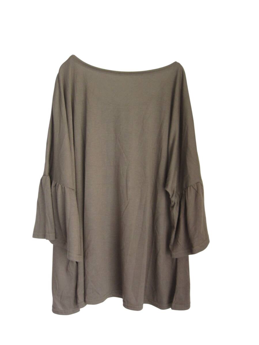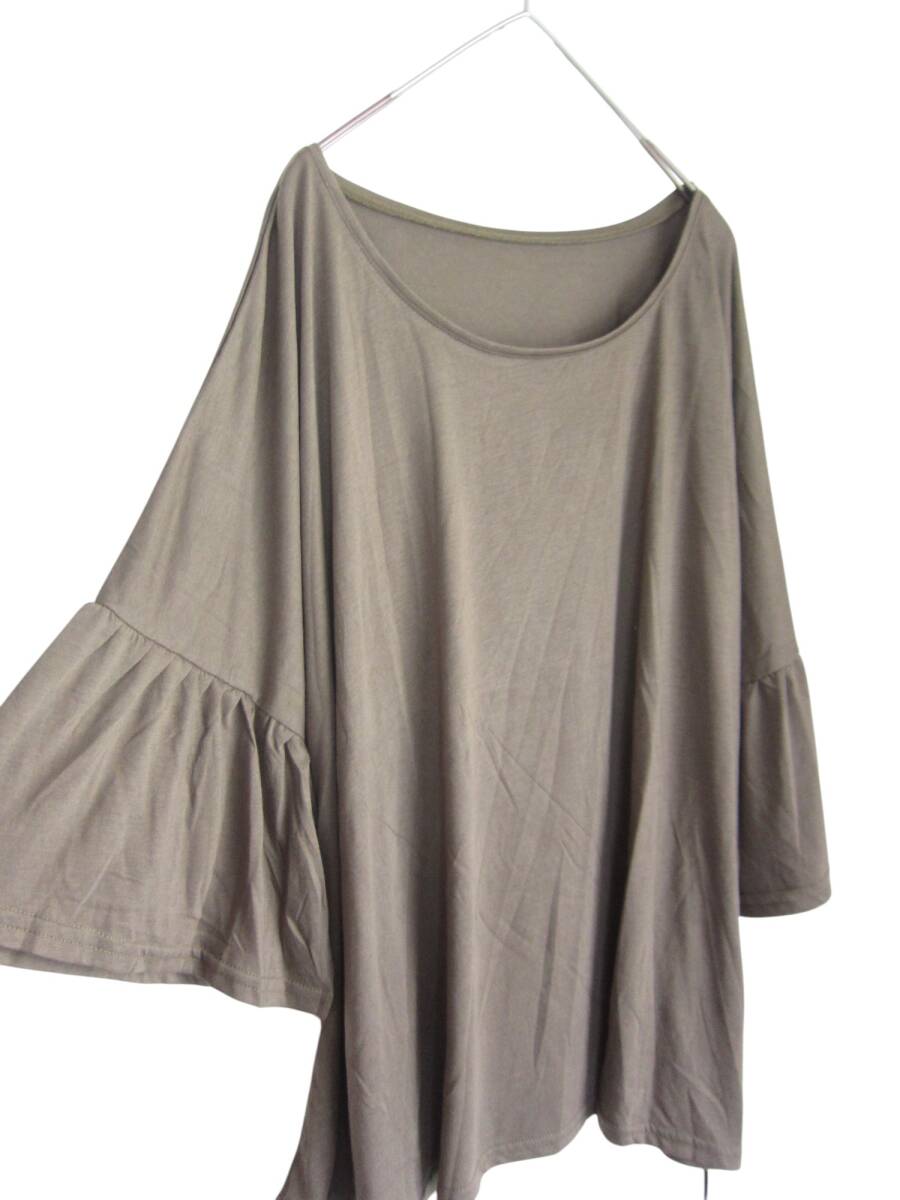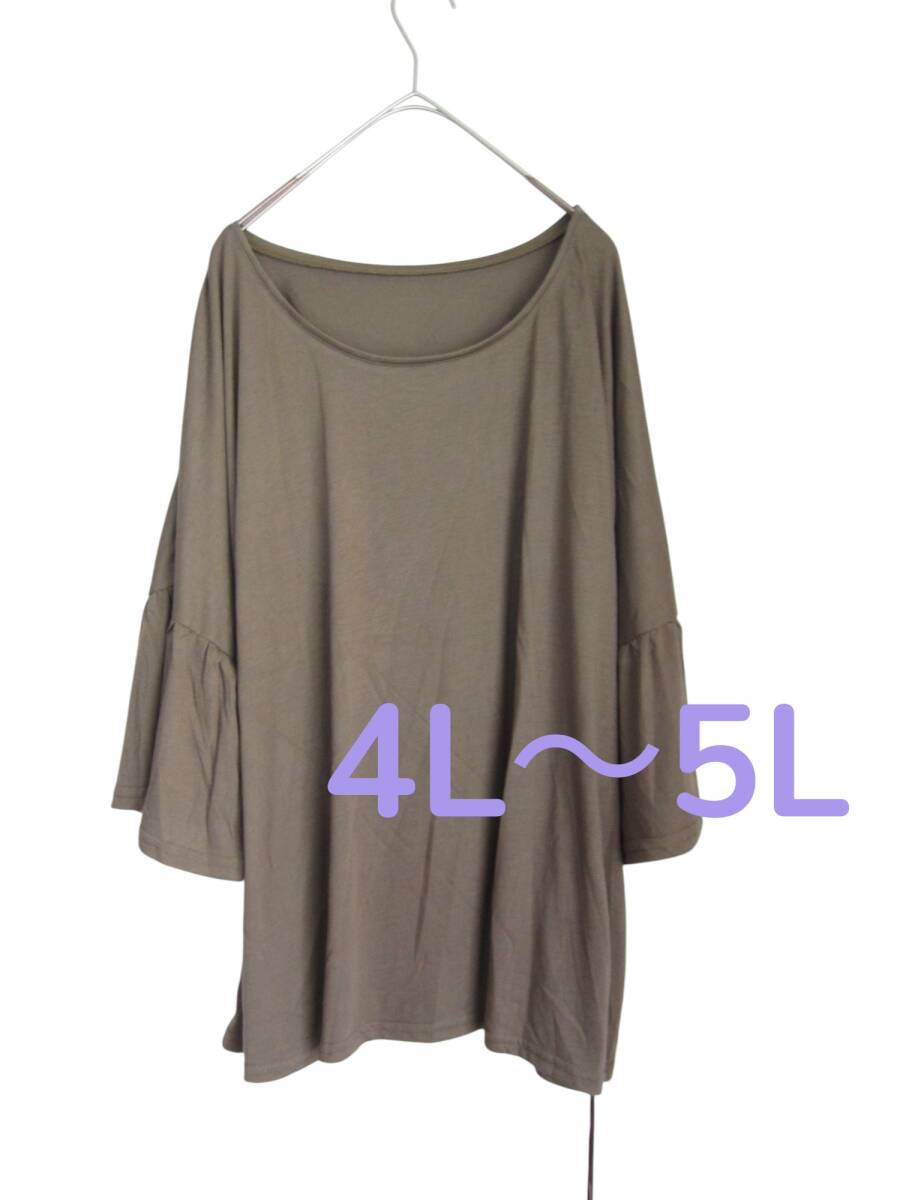 ★送料無料 S66 新品 【4L~5L】 カーキ とろみカットソー 7分袖 フレア 大きいサイズ ゆうパケットポスト