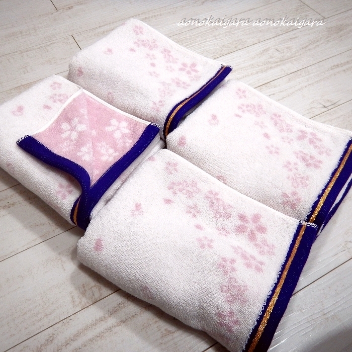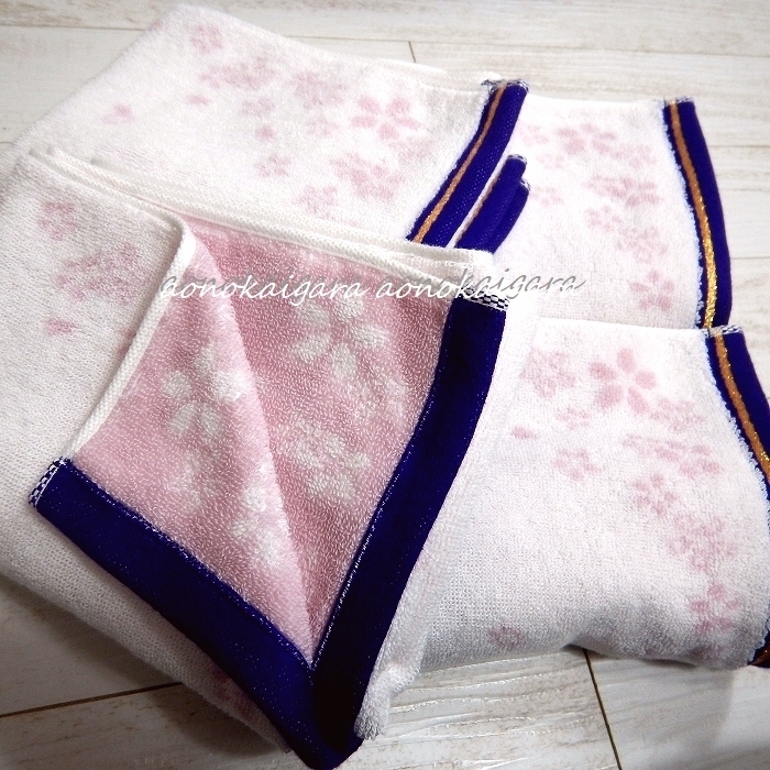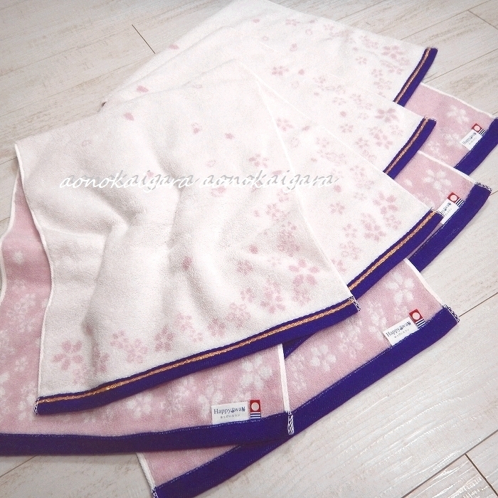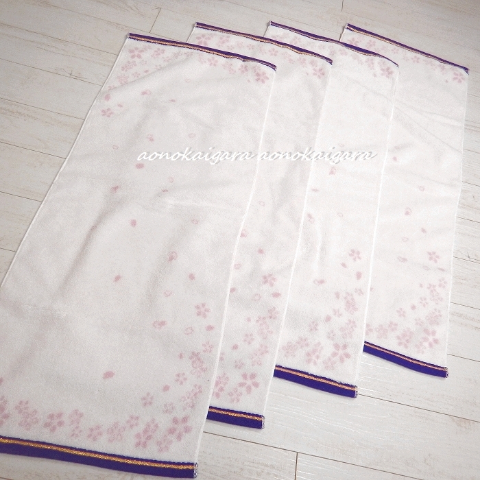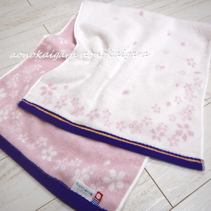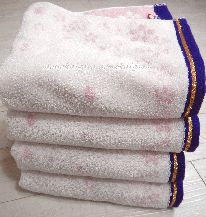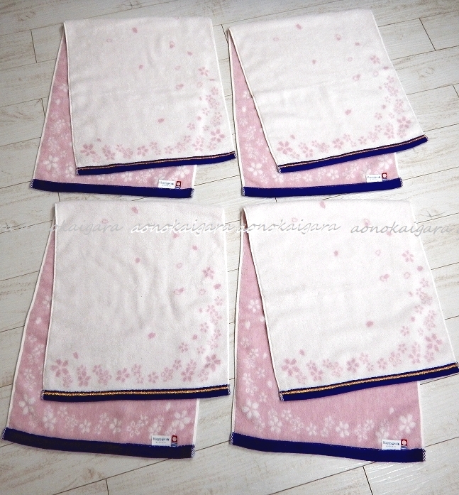 新品●今治タオル●上品●厚手●ふんわり●柔らか●桜舞い散る●桜柄●フェイスタオル4枚●ホワイト×ピンク