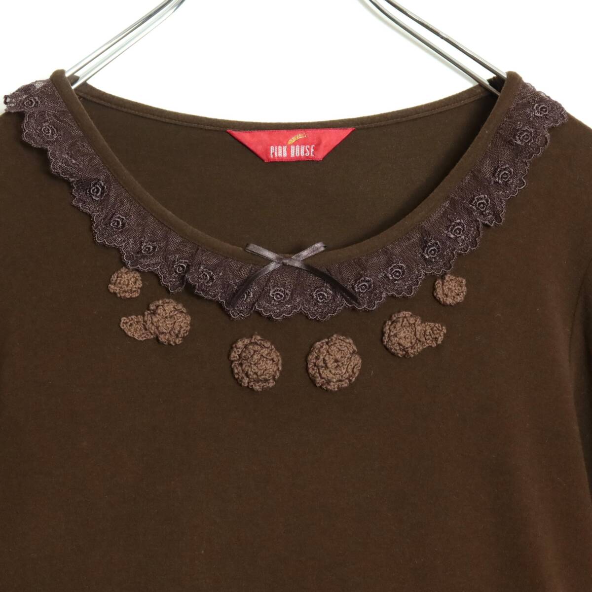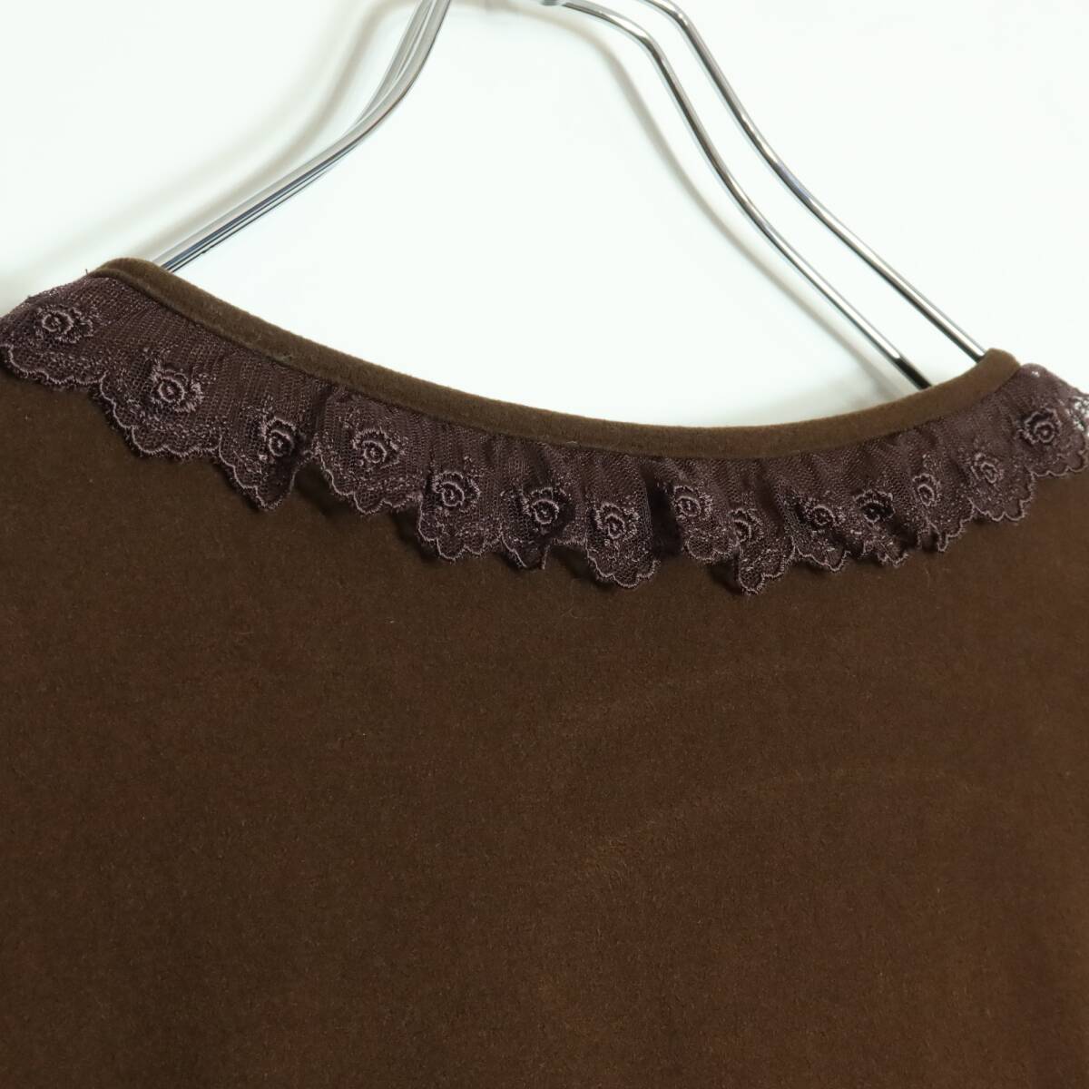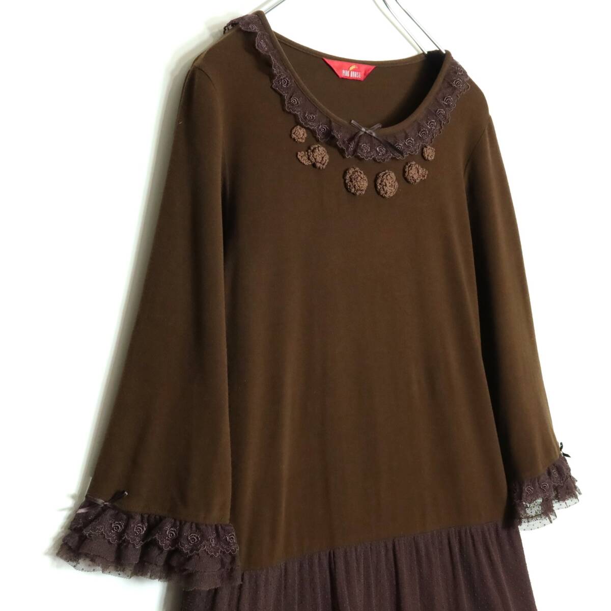 商品説明 | 【実寸約】肩幅38袖丈48バスト88着丈109(cm) 【サイズ表記】 なし。実寸をご参照くださいませ。 【素材】 アクリル57レーヨン38ポリウレタン5% 【状態】普通の使用感のあるお品物 【デザイン】ブラウン系 上半身はカットソー、スカートはドット付きチュールレースのドッキングワンピースです。 襟ぐりと袖口にはローズ刺繍付きチュールレースがほどこされ、サテンのミニリボンも付いています♪ 裾は綿ローンとチュールレースの段々フリル♪ フロントにはお花のニットモチーフまでついた手の込んだ一枚です。 スカート部分は綿ローンの裏地付き♪ これ一枚でもレイヤードでもロマンティックコーデに大活躍するアイテムです。 |