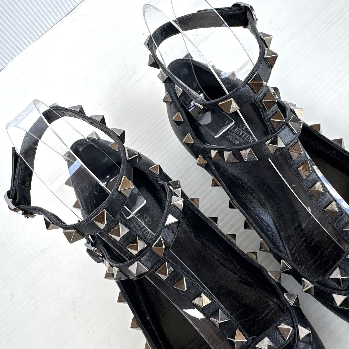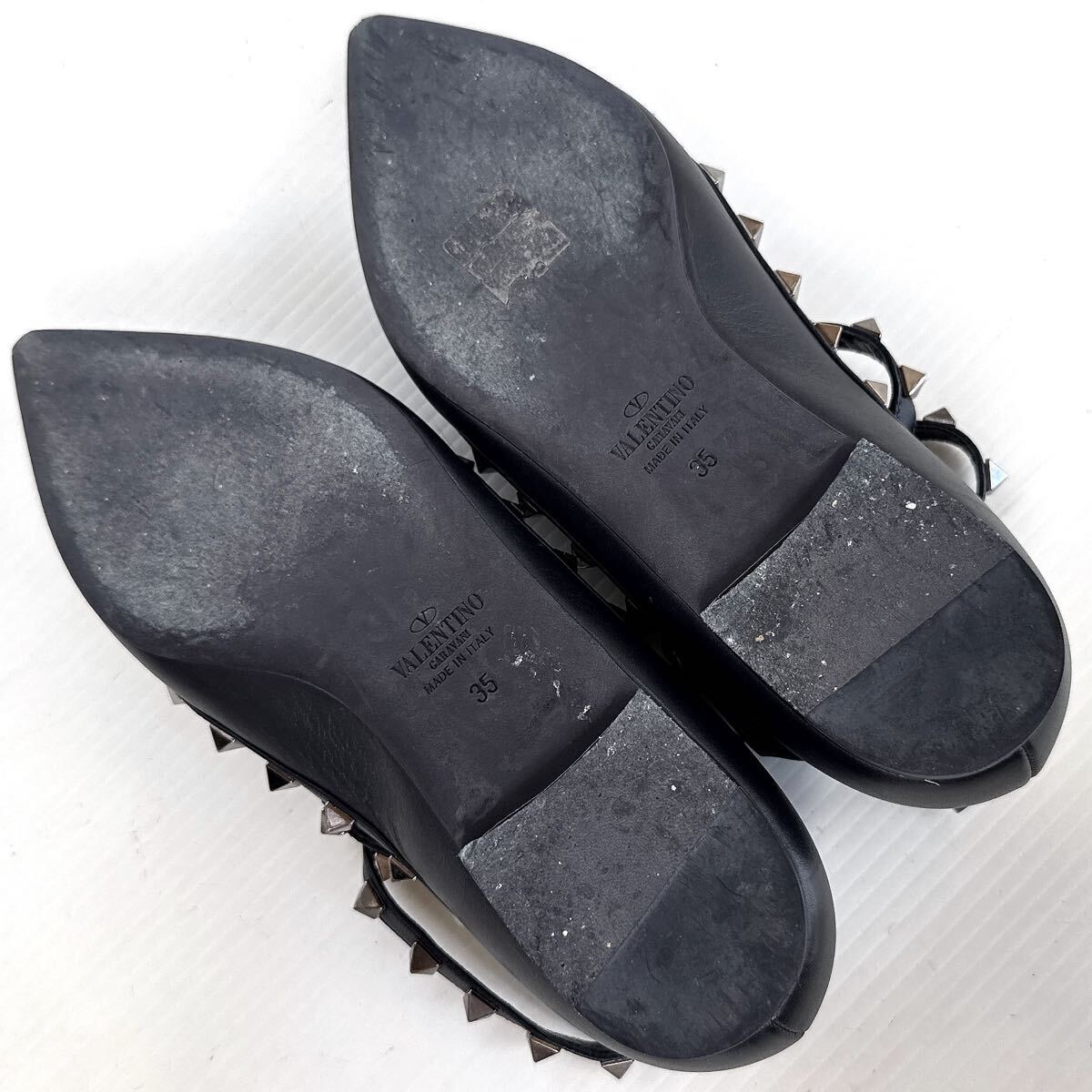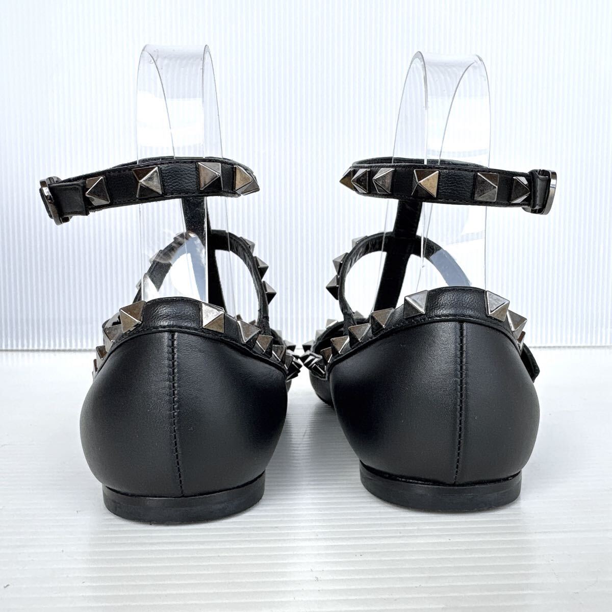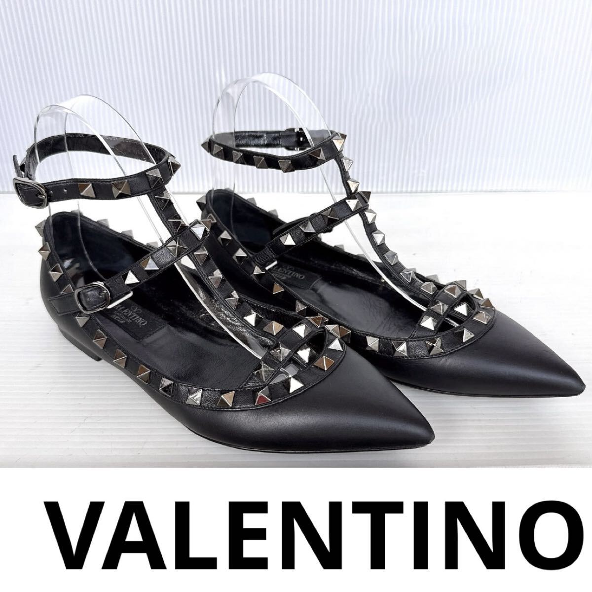 VALENTINO ヴァレンティノ 定番 ロックスタッズ ストラップ付き ポインテッドトゥ サンダル パンプス ローヒール フラットシューズシューズ ミュール イタリア製 正規品 レーディス シューズ 靴