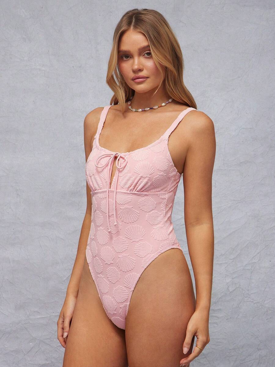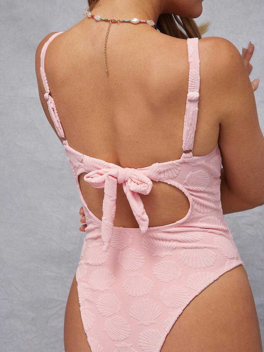 レディース 水着 ワンピース 夏 貝殻 ビーチ ニットテリー スパゲッティストラップ かわいい蝶ネクタイ フィッティング バックレ