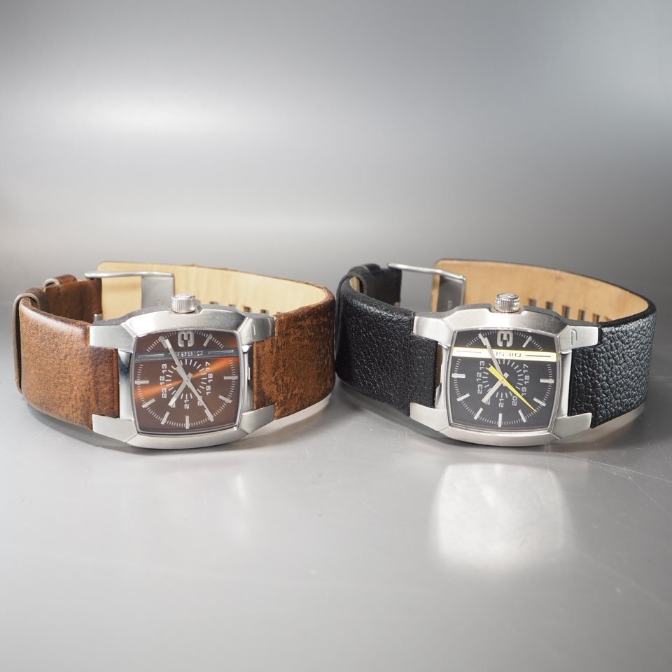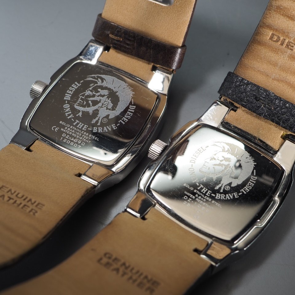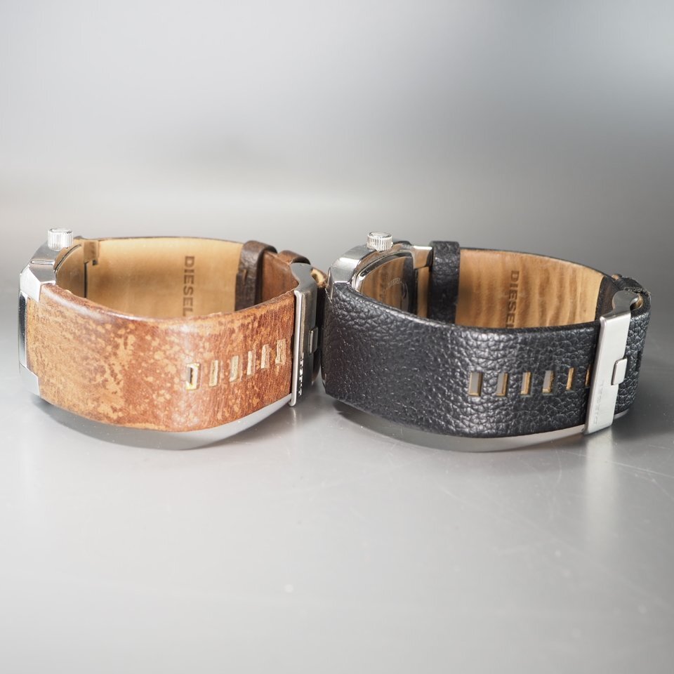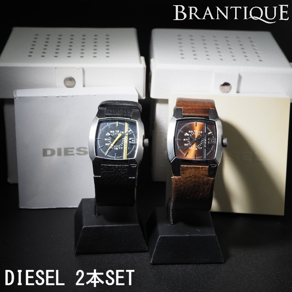 ◆即決あり◆ DIESEL ディーゼル DZ-1089 DZ-1090 SS/革 QZ 2本セット SET USED 稼働 箱 腕時計 「27208」