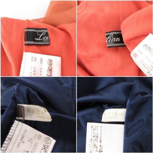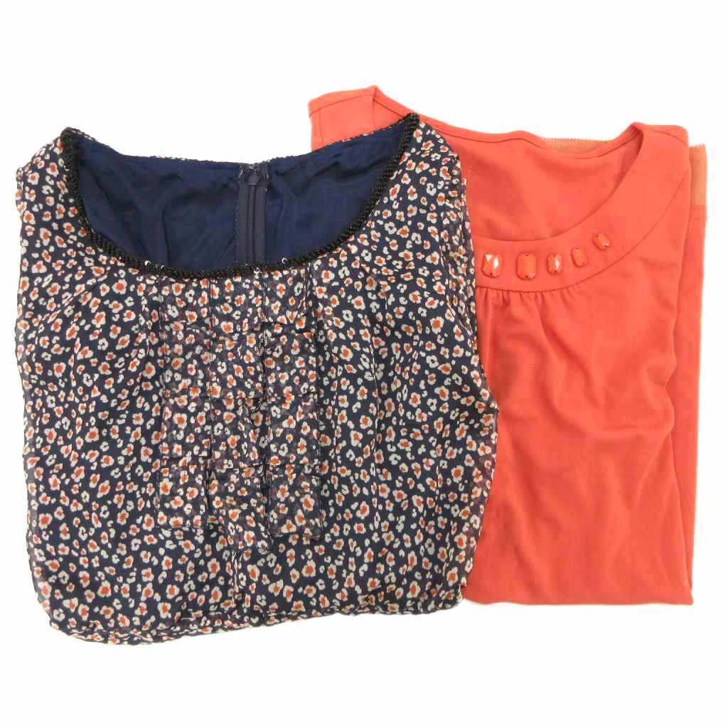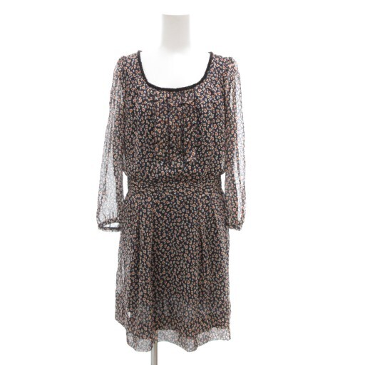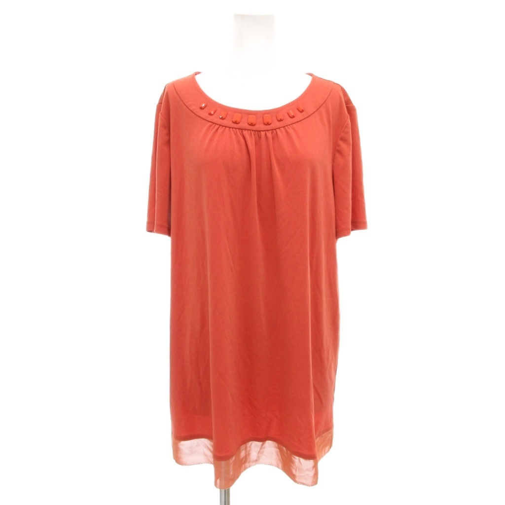 レリアン Leilian 2点セット ワンピース ブラウス 総柄 長袖 7分袖 3 13 オレンジ 紺 ネイビー /AE レディース
