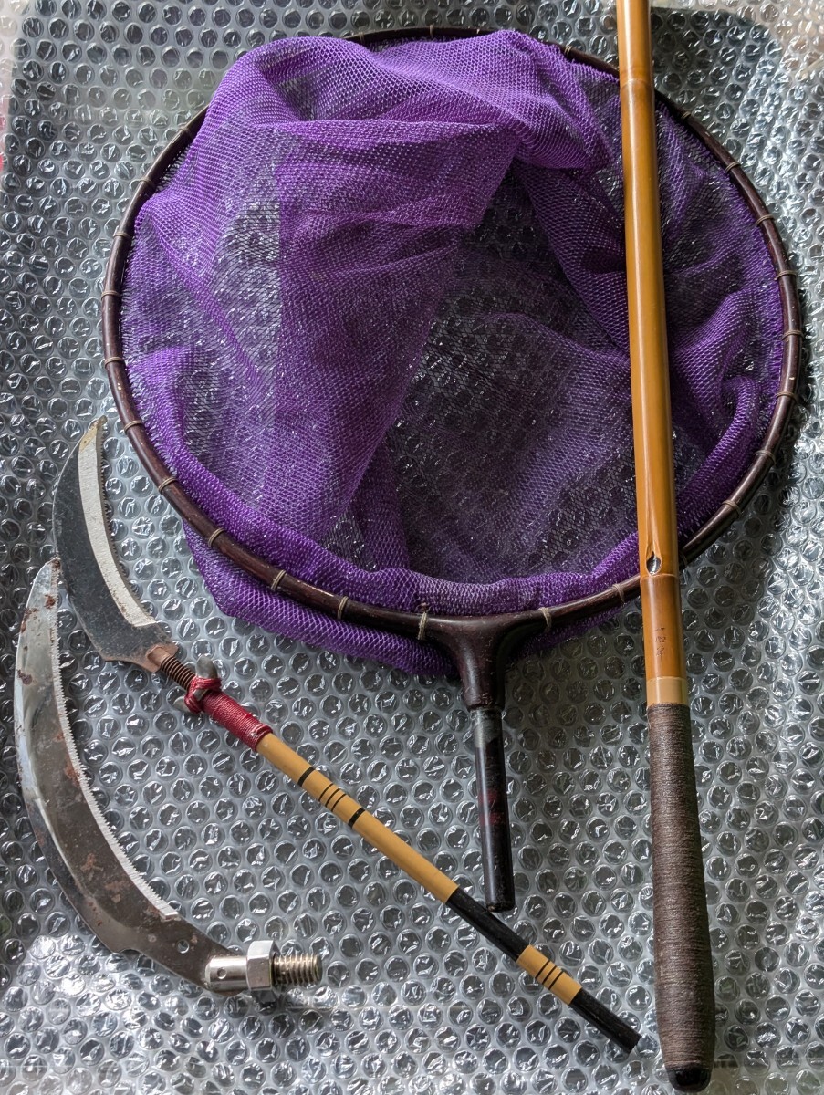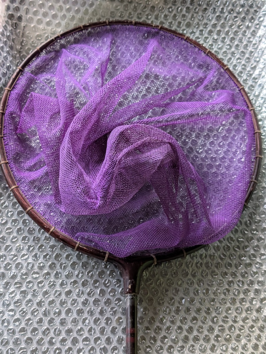 タモ網の直径は約30cm、柄の長さは約1mです。