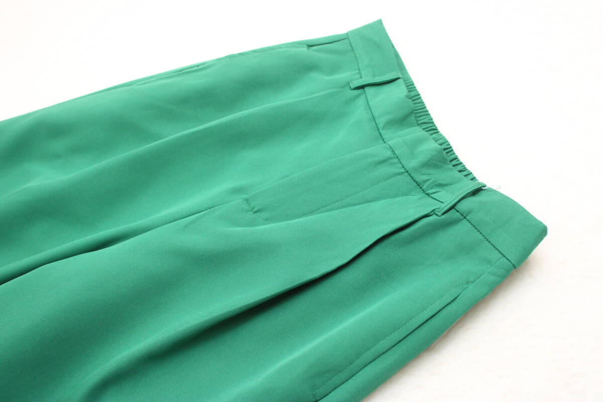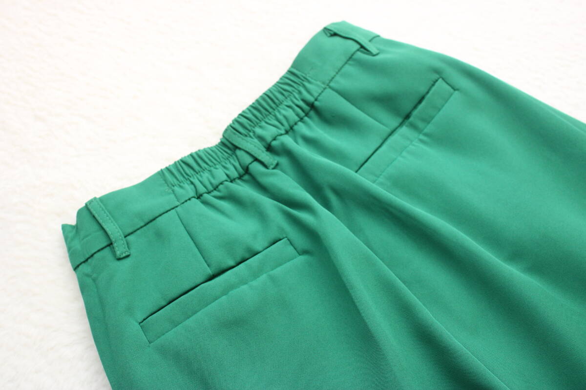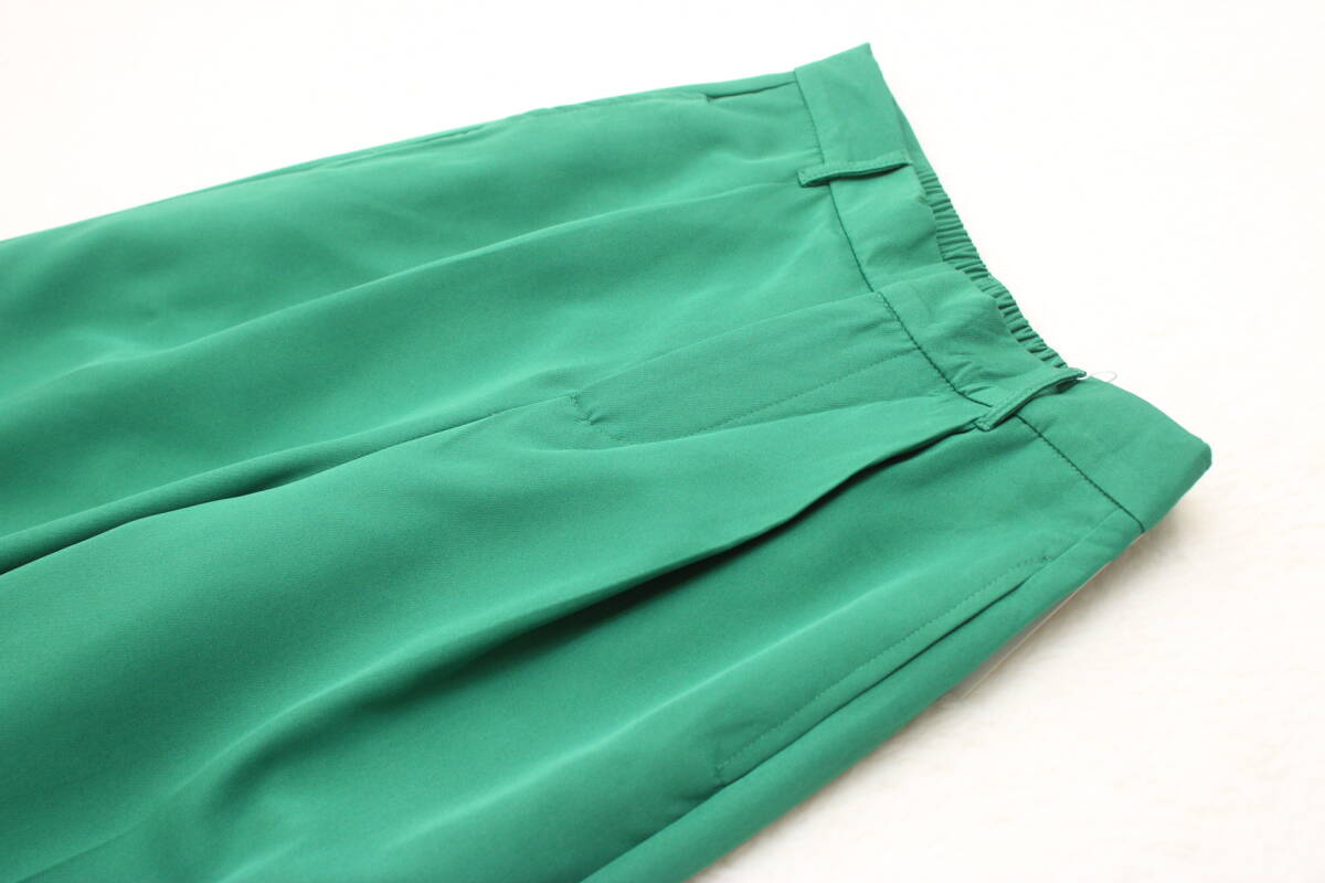 3640 新品タグ付き タックパンツ グリーンFサイズ 定価¥5,990+税