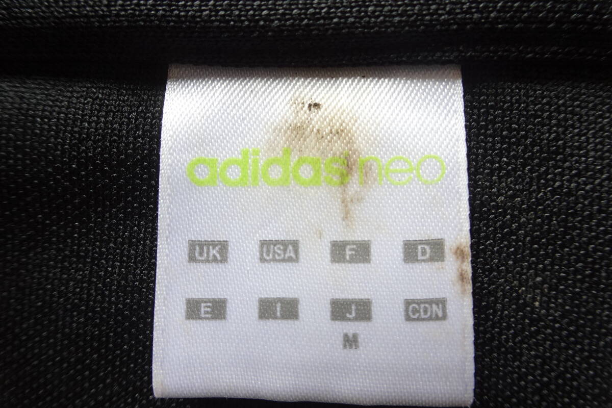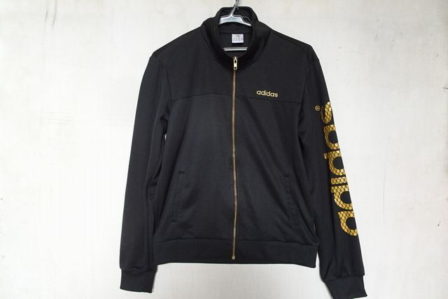 adidas neo/アディダス/長袖トラックジャケット/ジャージ素材/前ジップアップ/左袖ブランドネームプリント/黒/ブラック/Mサイズ(9/10R7)