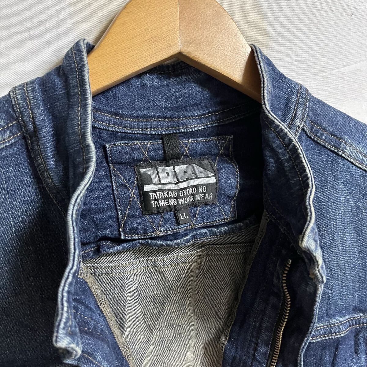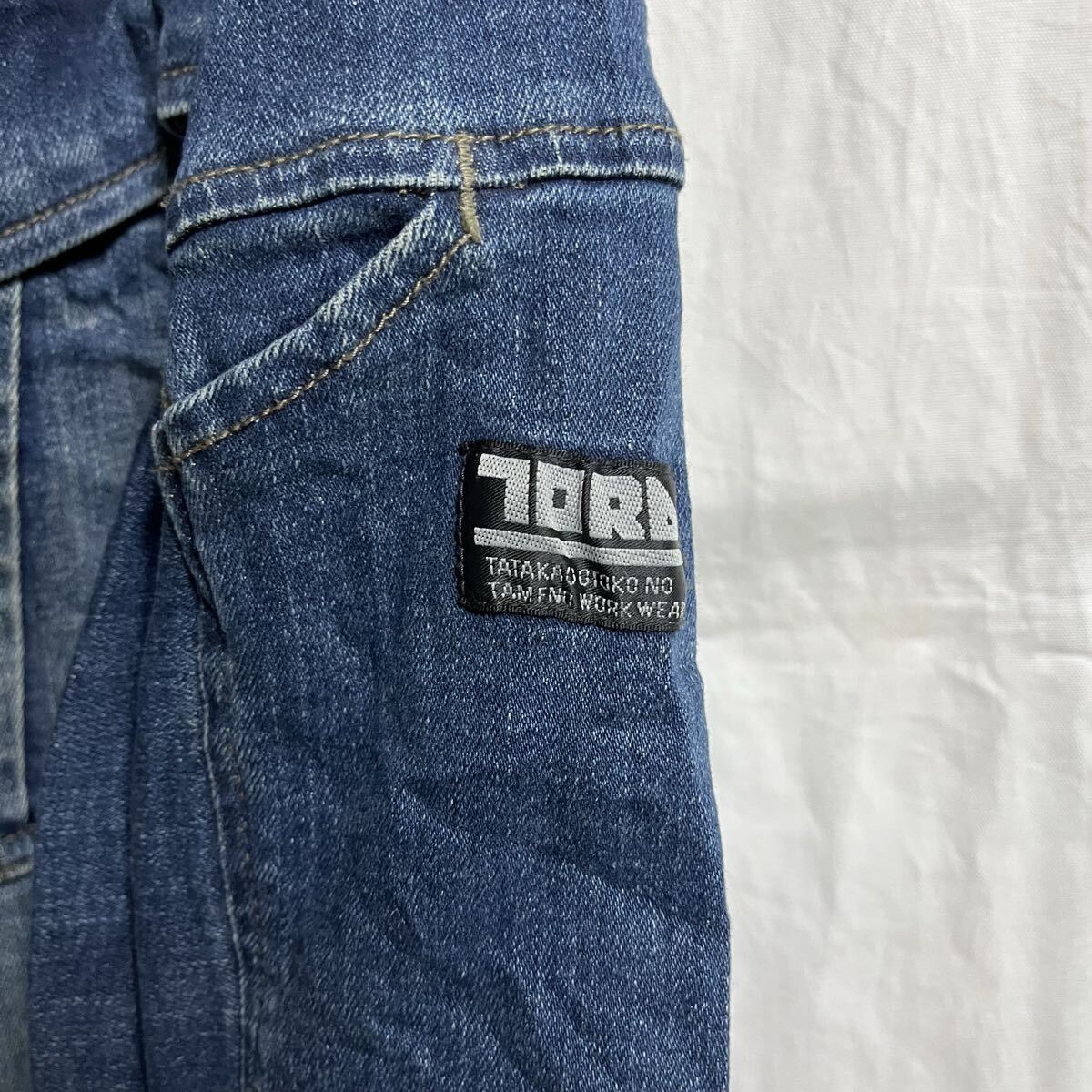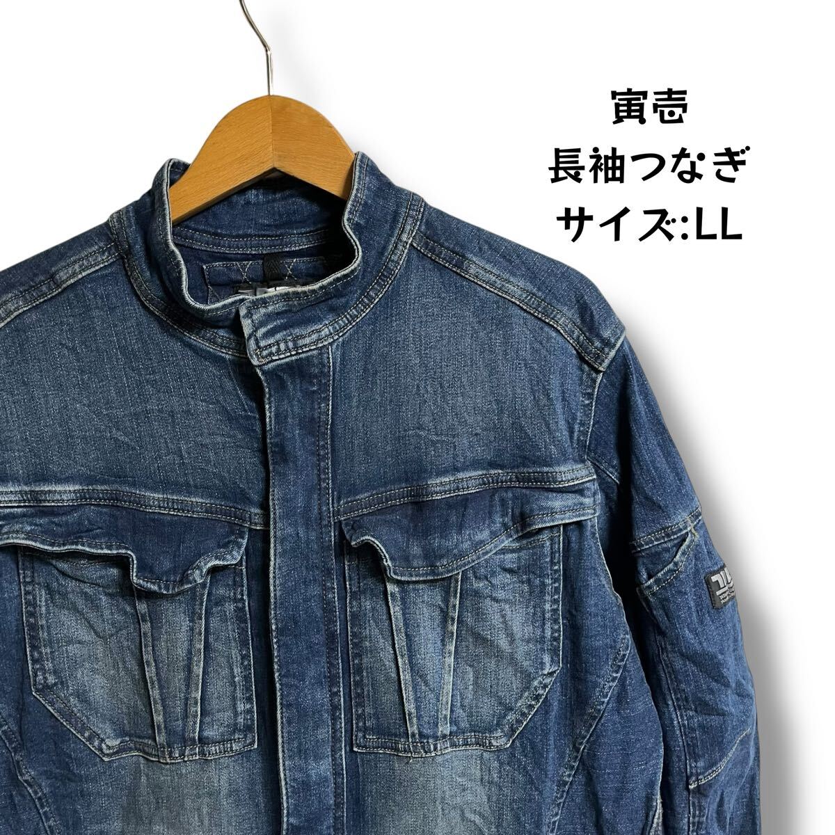 (TK0910)【美品】 寅壱 TORA 長袖 デニム ツナギ オールインワン ジャンプスーツ ブルー 作業着 ワーク ウェア ストレッチ 立体裁断 LL #1
