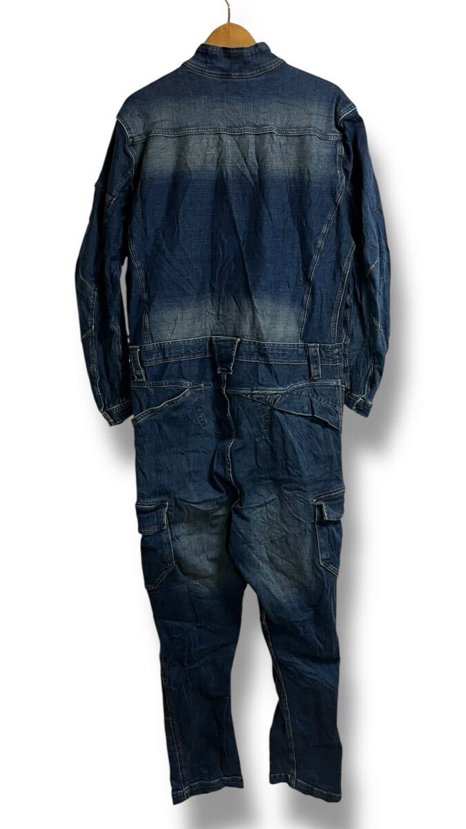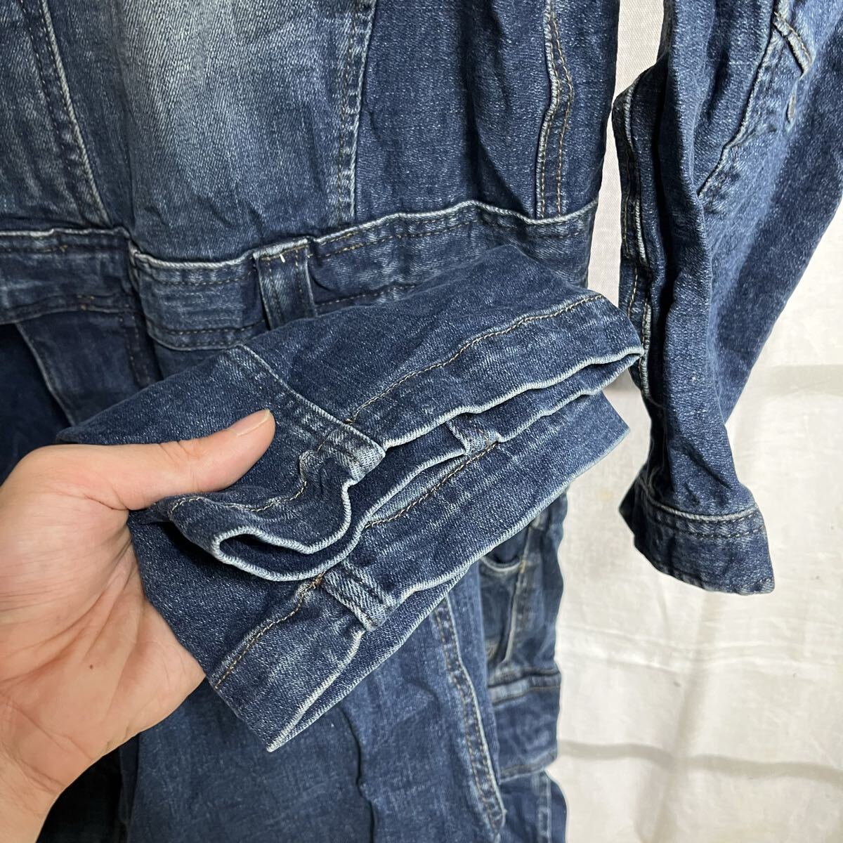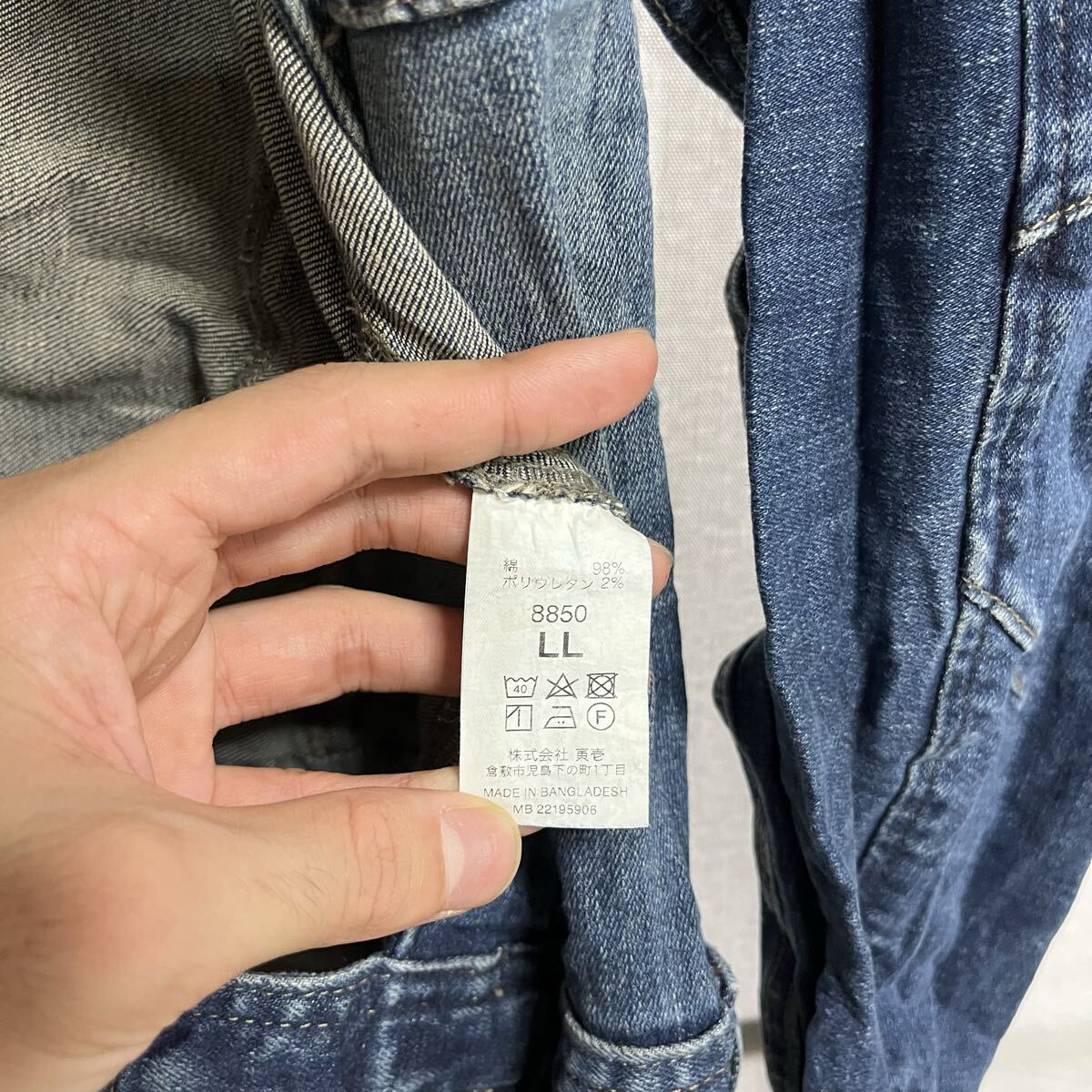 (TK0910)【美品】 寅壱 TORA 長袖 デニム ツナギ オールインワン ジャンプスーツ ブルー 作業着 ワーク ウェア ストレッチ 立体裁断 LL #1