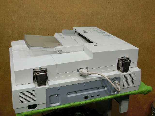 | 状態 | この商品は訳あり部分があります。 あらかじめ下記説明文をお読みいただき ご納得の上でご入札をお願いたします。 ー訳あり箇所ーーーーーーーーーーーーーーーーーーーー ADFで読み込んだ画像が少し明るく読み込んでしまっている感じがします。 読取り濃度を濃くした状態で読み込めば、元原稿に近い感じには なっているようではありましたが・・・・ 上記のようなことから、なんとなく原稿が読み取れればいいレベルで 良い方のみご入札お願いいたします。 フラットベッドでの読み込みは、 概ね普通に読み取っている感じではありました。 テンキーの『1』の印刷が少し擦れています。 ーーーーーーーーーーーーーーーーーーーーーーーーーー ○動作確認= スキャンデータを、LAN接続経由での Windows PCへの転送はできました。 また、ADFでの読み取り動作はA4のコピー用紙原稿にて 20枚ほど両面読み取りにてスキャンしてみましたが、 読み取り動作に関してはできているようでした。 フラットベッド面も読み込み動作はできているようでした。 USBメモリにもスキャンしたデータを、 直接USBメモリにファイル書き込みすることも可能です。 USBポートはフロントにもあります。 ※中古ですので、多少の給紙ローラーの消耗などはあるかと思います。 カタログや薄紙の原稿等は詰まりやすい場合もあるかと思います。 あらかじめご了承お願い致します。 ドライバー(ユーティリティ)はメーカーページよりダウンロードいたしました。 ※現状のカウンターは以下のようになります。 総スキャンカウンター数 :134020 カラースキャンページ数 :3791 白黒スキャンページ数 :130229 出荷前チェックなどで多少増える場合もございます。 また、下記の対応プリンタであれば、USBケーブルで スキャナーとプリンターを繋ぐだけで 簡単にコピーシステムを構築可能です。 ※一部ファームウェアのアップが必要な機種や機能が制限される機種もあります。 詳しくはメーカーホムページにてご確認お願い致します。 ※対応機種 ■カラープリンタ 9950C,9600C,9300C,9100C,2900C,7600C,5900C,5900CP,5750C,5700C 9900C,9800C,9750C,9350C,1700 ■モノクロプリンタ 8500N,8450NW,8450N,8250N,8250,5500,5500P,5300,8400N,8200N,8200 ○接続= LAN USB ※USBコネクタはUSBメモリや、コピーシステム等で 使用する時のみ使用します。 PCとの接続はLAN経由での接続となります。 ご注意お願いたします。 ○外観= 全体的に使用感、色焼け、中古感がみられます。 コンタクトガラスには取り込み画像に写ってしまうような 大きな目立つ傷はみられませんでした。 中古品ですので、細かな線傷はあるかと思います。 (画像を拡大したりしての微細なチェックまでは保証しかねます) 細かな傷等については気になさらない方のご入札をお願いいたします。 ○付属品=電源コードが付属します(取説、ドライバCD等はございません)。 ※多少のヤケや細かな傷につきましては、中古品のため予めご了承お願いします。 清掃につきましては、簡易な清掃となります。 写真をご参照いただき、ご判断お願いします。 設定、メンテナンスに関するサポートは一切行っておりません。 |