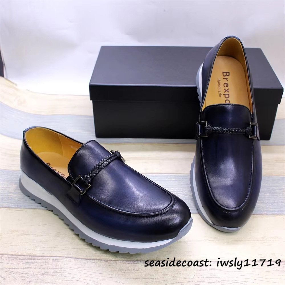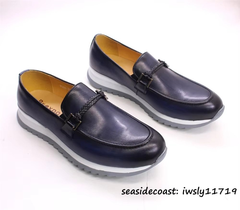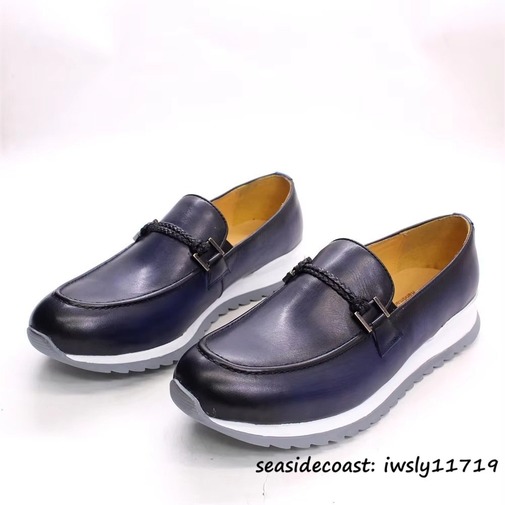 超希少★スリッポン メンズ レザーシューズ 本革 職人手作り ビジネスシューズ イギリス風 ローファー 超軽量 高級牛革 紳士靴 革靴 26.5cm