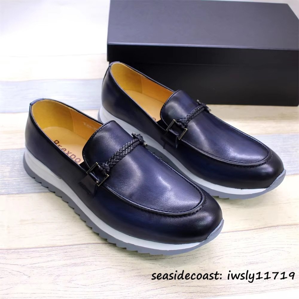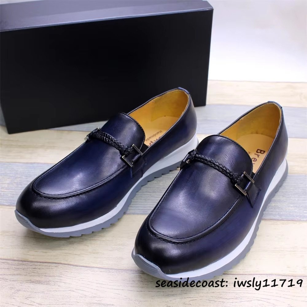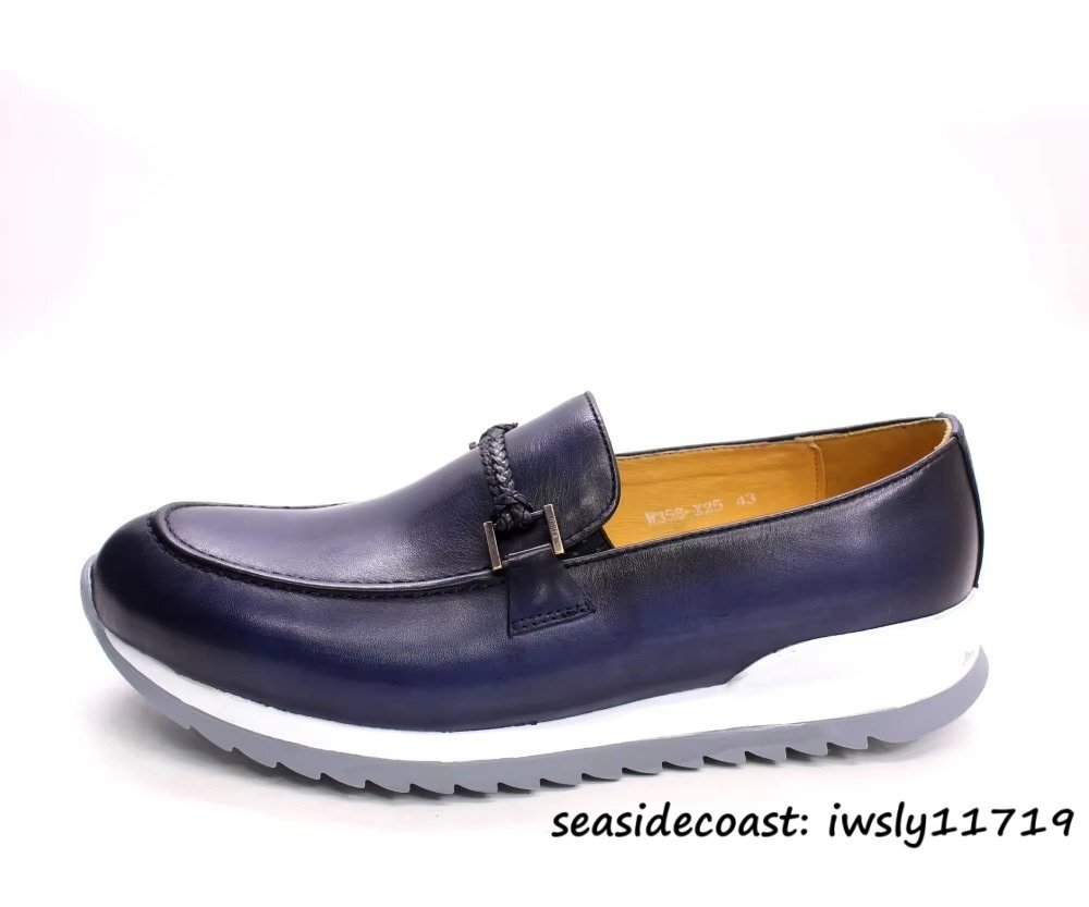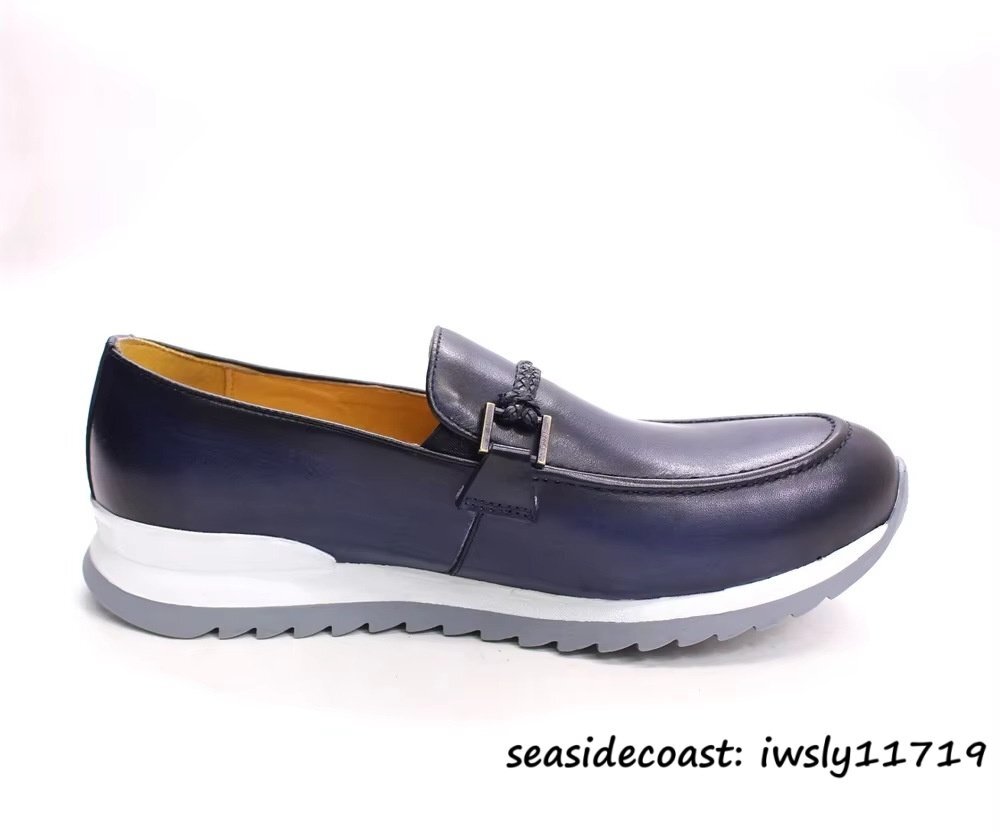 超希少★スリッポン メンズ レザーシューズ 本革 職人手作り ビジネスシューズ イギリス風 ローファー 超軽量 高級牛革 紳士靴 革靴 26.5cm