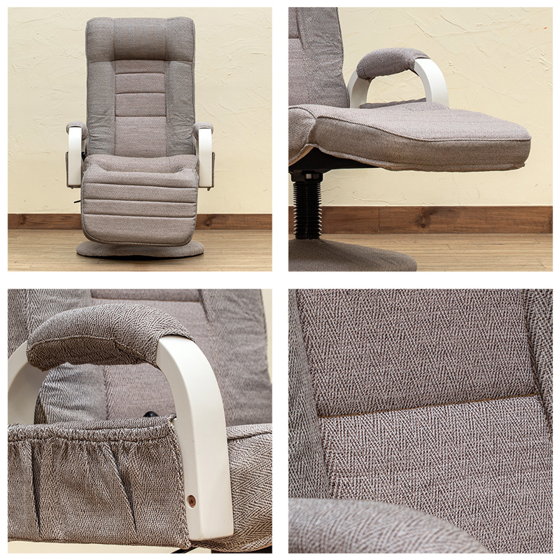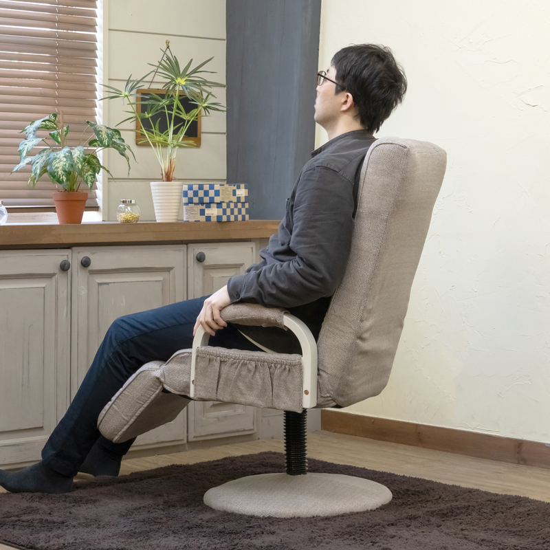 | 商品説明 | 組立品(約20分) 脚までゆったりリラックス♪ 高さも変えられる回転式の高座椅子です! 背もたれ13段階、脚は5段階のリクライニングでゆったりリラックス! 回転式なので、座ったまま向きを変えられて便利ですね。 座椅子の高さ調節もレバー1つで簡単調節! 肘掛けにはポケット付きなので、良く使う物などは手元にしまっておけますね。 |