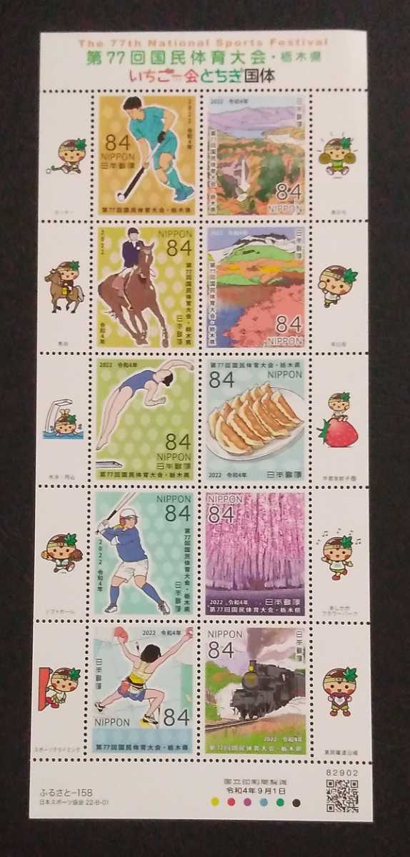 2022年・ふるさと切手-第77回国民体育大会シート(栃木)解説書付