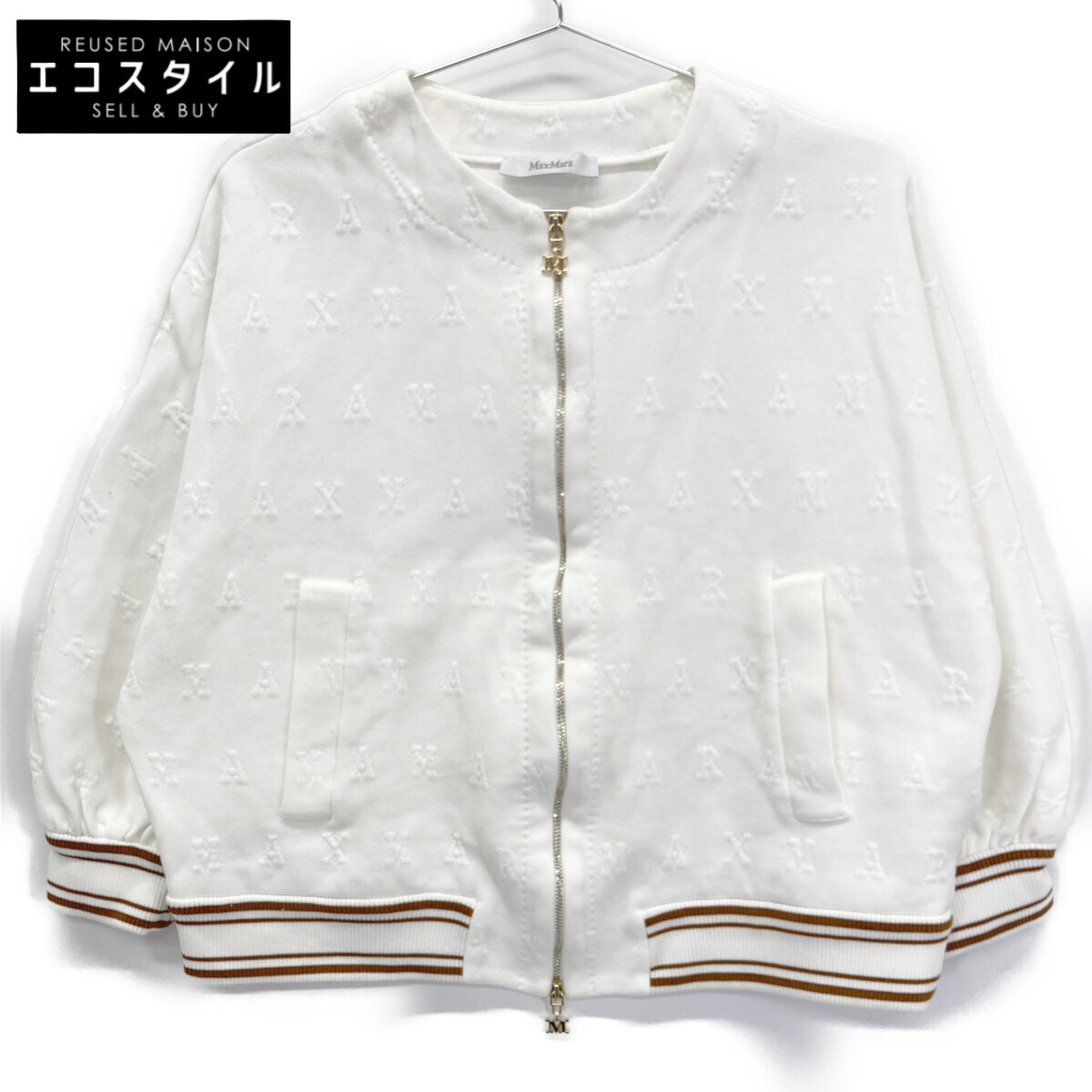 Max Mara マックスマーラ 2319110332 CARTONE ブルゾン ジャガードロゴ ホワイト 38 ジャケット コットン レディース 中古
