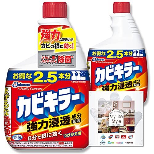 ・ 特大 1000g (替え×2) ・・Size:特大 1000g (替え×2)・カビの根まですばやく届くカビ取り剤・日本製・強力浸透成分の配合・お風呂や浴室の臭いの原因の菌・バクテリアもスッキリ除菌・ピンクヌメリもしっかり落として、除菌商品紹介 カビ取り剤 特大サイズ 付替え用 1000g × 2本+ビニール手袋付き 強力浸透力でカビの根に届き、浸み込みすっきり落とすカビ取り剤。 ●ゴムパッキンの黒カビまですっきり落とします。 ●嫌なニオイの原因にもなる菌・バクテリアを除菌します。 ●除菌もできるカビキラーで、しつこいピンクヌメリもスッキリきれいに。 ●浴室の壁、床、タイル目地、イス、シャワーホース、浴槽フタなど浴室の小物から隅々までキレイにできます。 ※使用には専用の本体が必要です。 ※使用上の注意をよく読みご使用ください。 使用上の注意 液が目に入らないように注意。 必ず単独で使用。 酸性タイプの製品や食酢、アルコール、アンモニア等と混ざると有害なガスが発生して危険。 用途以外に使わない。 他の容器に移して使わない。