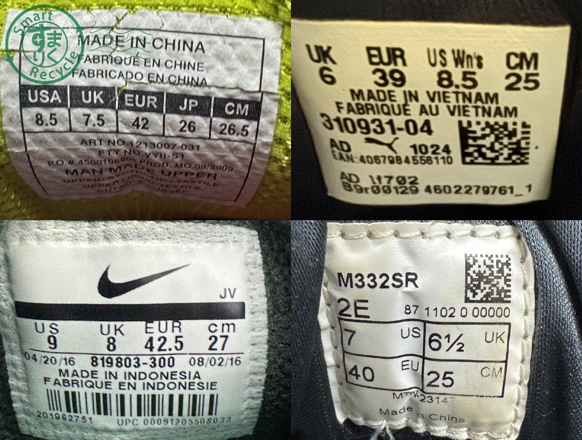 【詳細】 アンダーアーマー プーマ ナイキ ニューバランス 他 合計15点以上 ※写真に写っているものが全てです。 ※まとめ売り商品のため、個別のご質問には対応いたしかねます。 中古品です。 サイズや状態は様々です。 ※24cm台~27cm台のサイズ展開となっております。 23cm台以下の小さいサイズや28cm以上の大きいサイズも含まれる可能性がございます。予めご了承ください。 まとめ売りのため採寸や細かい検品はしておりません。 経年・使用・長期保管に伴う品質の劣化・汚れ、傷、シミ、カビ、擦れなどのダメージがございます。 また、名前の記載や、生地やソールが剥がれて欠損しているもの、べた付きやにおいがするものなど、状態が非常に悪い商品が含まれている可能性があります。現状でのお渡しとなります。 そのためジャンク品として出品致します。 ジャンク品についてはいかなる場合でも返品はお受けできません。 ご承知の上、ご入札ください。 まとめ売りのため個別梱包はしておりません。 まとめて簡易梱包にて発送になります。 予めご了承ください。 ■商品の状態ランク:D ※あくまでも目安としてお考え下さい ●中古ランク表示● N= 新品 S= 新品同様品・未使用品 A= 中古品 キズ・汚れ少・使用感があるが比較的程度が良い B= 中古品 キズ・汚れがある C= 中古品 キズ・汚れ多・かなり使用感がある D= 中古品 難あり・ジャンク・破損あり・動作確認不可・要修理 ※来店引取りの場合は落札日から7営業日以内でお願い致します。 期限を過ぎた場合はキャンセルとさせて頂きますのでご了承ください。 ※営業日は商品ページの休業日カレンダーをご確認ください。 | |||