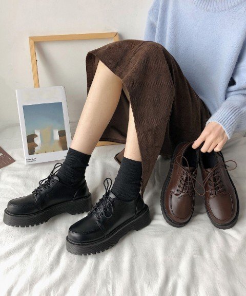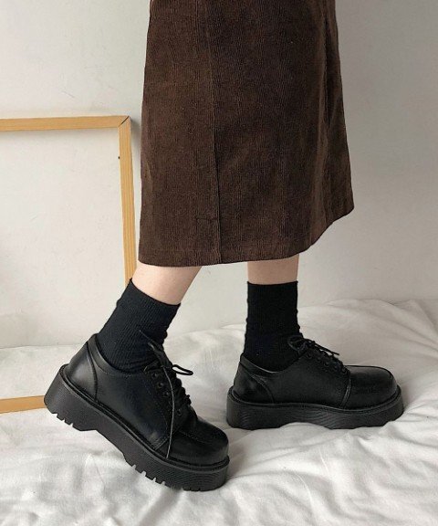歩きやすいシューズ 韓国ファッション靴 ボリュームソール黒