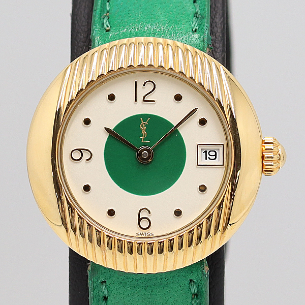 デッドストック級 稼働 美品 イヴサンローラン 01C 10409 白文字盤 QZ レディース腕時計 0540100 4ERT KTU ABC 15997