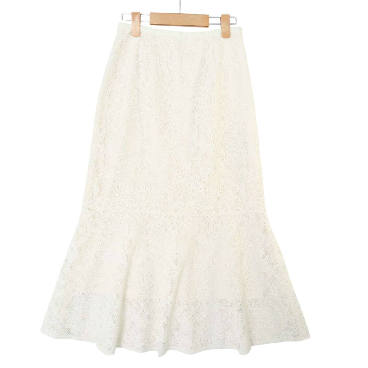NOLLEY'S ノーリーズ 春夏★ 花 フラワー 総レース マーメイド レース フレア ロング スカート Sz.36 レディース 白 日本製